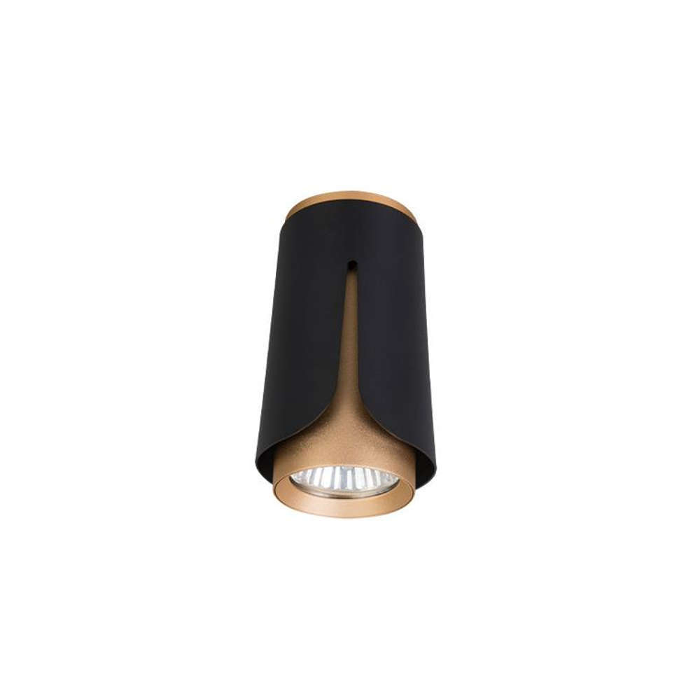 Цилиндрична луна за повърхностен монтаж с фасунга GU10, корпус от алуминий и метал, цвят черен и месинг