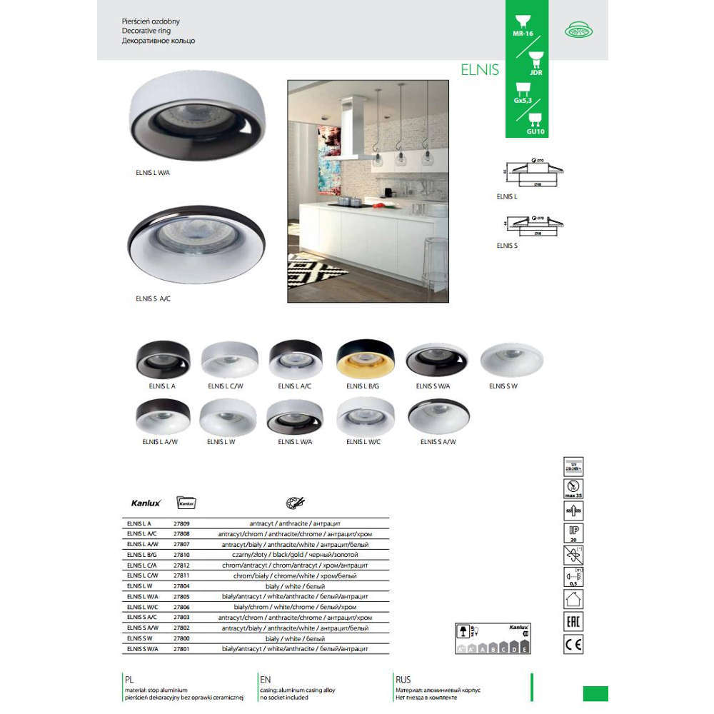 Декоративна луна за вграден монтаж KANLUX ELNIS S W 27800, кръгло тяло, съвместимо с всички led лунички MR16, стационарна