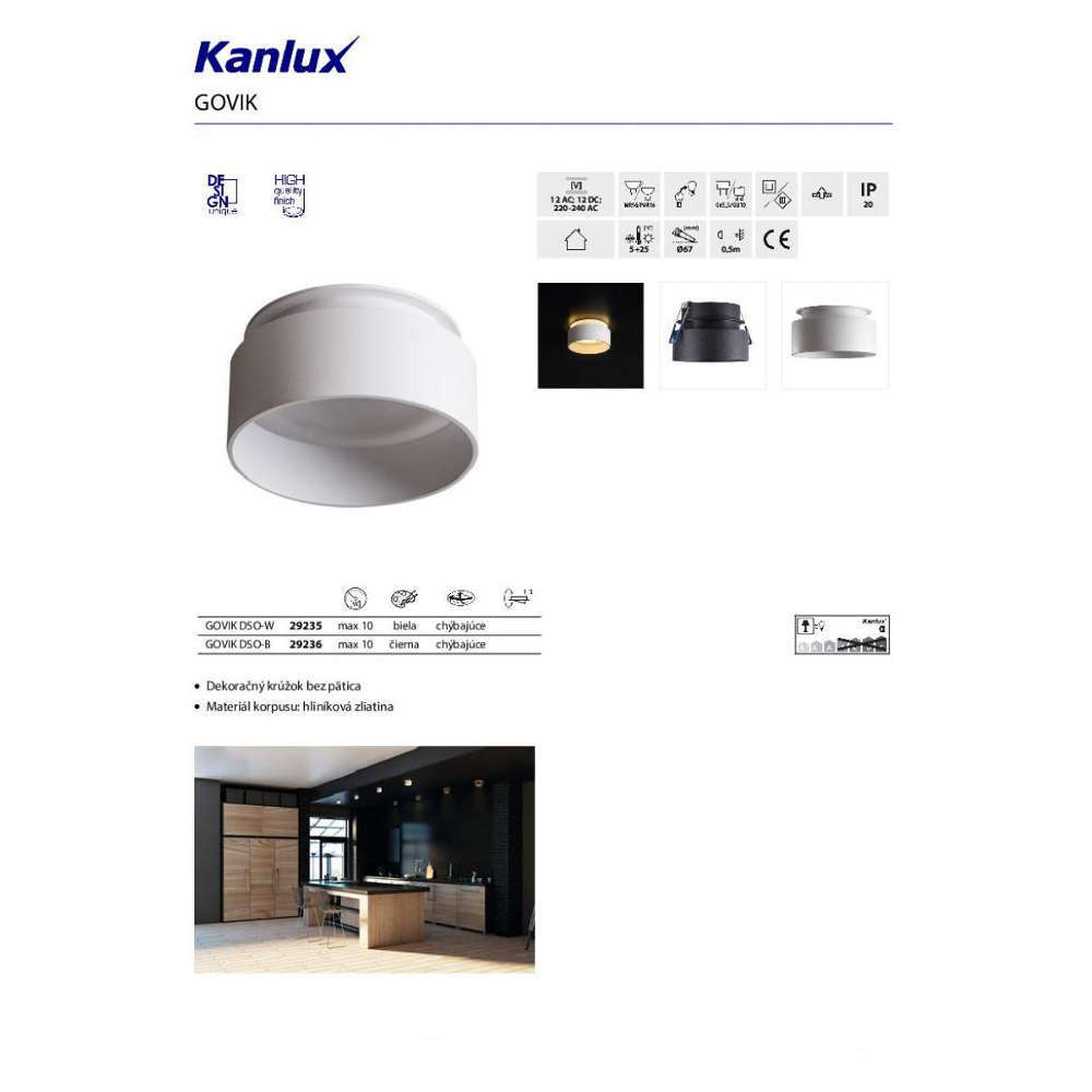 Декоративна луна за вграден монтаж Kanlux GOVIK DSO-B 29236, черно кръгло тяло, съвместимо с всички led лунички MR16, без лампа в коплекта
