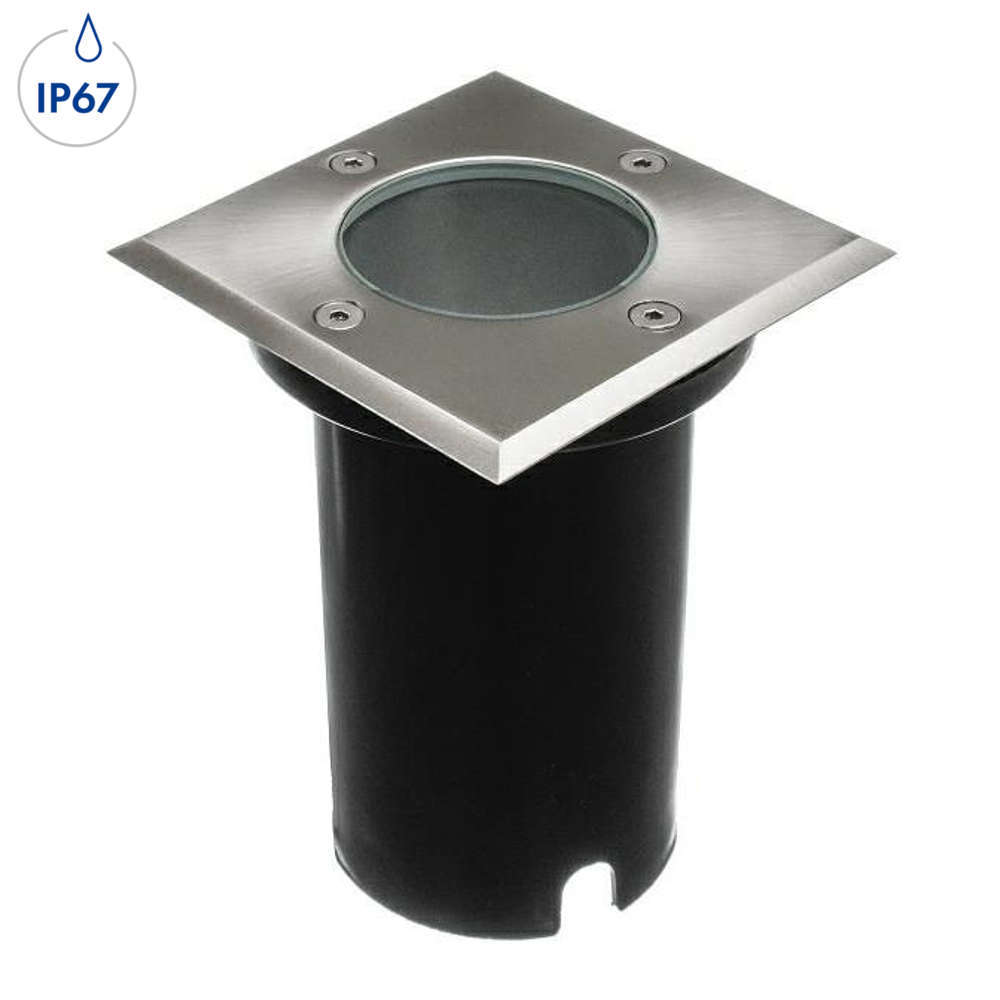 Осветително тяло за вграждане в земя GU10 IP67 IK09 110x110mm с монтажна кутия, квадратен капак