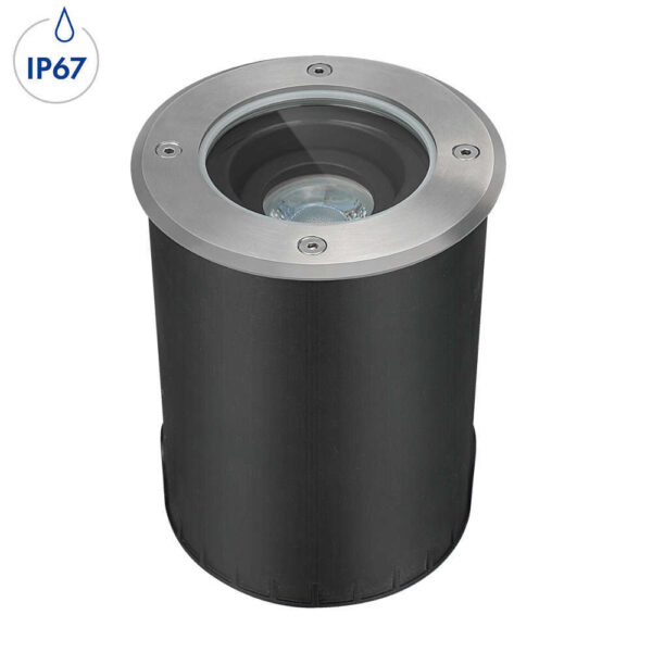 Външни осветителни тела за вграждане в земя IP67, кръг, неръждаема стомана/стъкло, фасунга GU10, с насочване