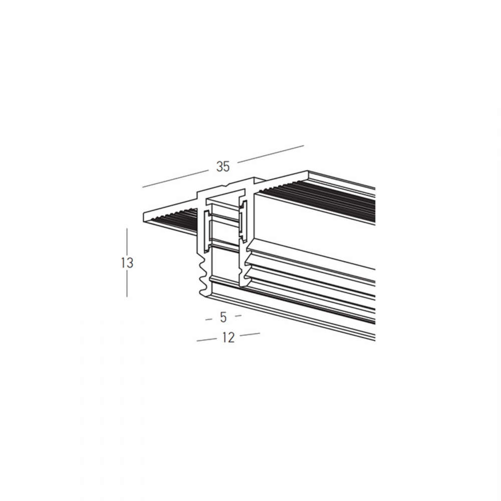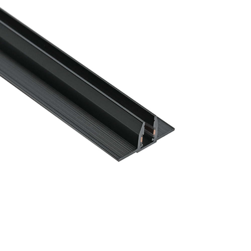 Магнитна шина за вграждане Zambelis 2504, 1 м, черен алуминий. Подходяща за гипсокартон 12.5 мм, част от системата 48V Slim 5mm. Осигурява елегантен и стабилен монтаж, съвместима с всички магнитни осветителни тела 5мм Zambelis. Перфектен избор за модерни интериори с изчистена визия.