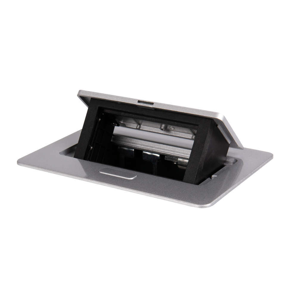 Pop кутия за вграждане в маси и бюра, цвят сребрист, плавно отваряне, доставя се с монтажна кутия