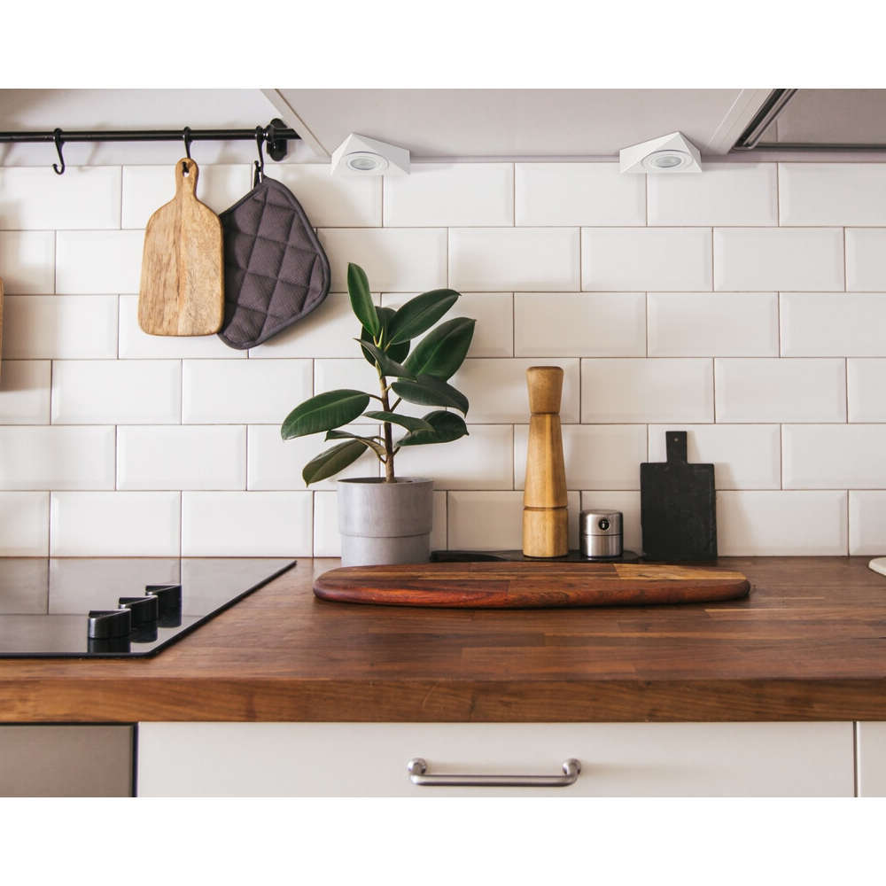 Мебелна луна ZEPO LFD-T02-W Kanlux 36631 e новата гама от корпуси за повърхностно монтиране, която е идеална за всяко осветление на кухненски шкаф. Триъгълните размери на рамката насочват светлината надолу и към повърхността отдолу, за да създадат приятна околна светлина. Осветлението под шкафа може да се актуализира чрез избрана лампа с подходяща светлина. Чрез добавяне на Wifi контролер към веригата можете да управлявате светлините чрез безплатно приложение за смартфон или с дистанционно управление.