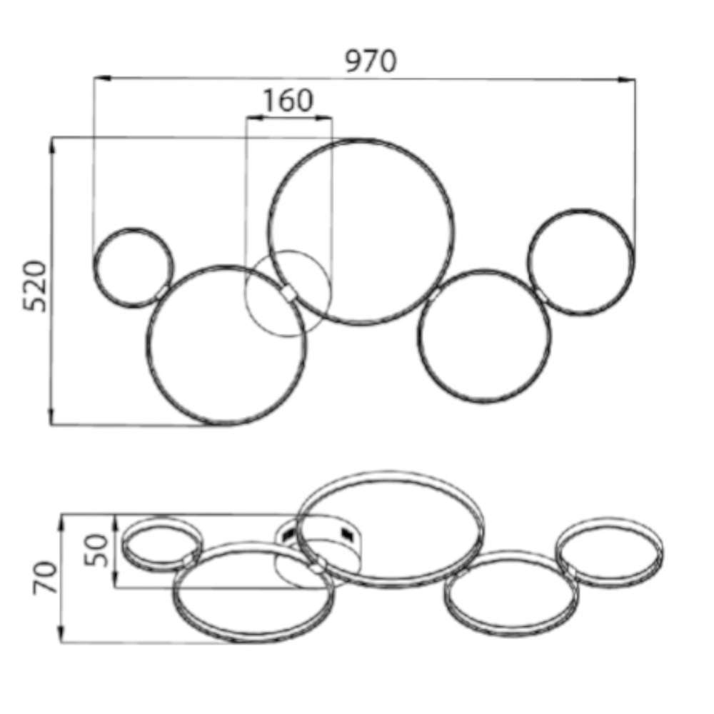 Основният материал, от който е изработено тялото е метал, което му придава здравина, докато интегрираният LED модул осигурява топла и уютна светлина. Розетката, с която се монитра към тавана е с дължина от 70 мм и височина 50 мм., както и диаметър 160 мм, което я прави лесна за инсталиране и идеална за всяка кухня или трапезария.