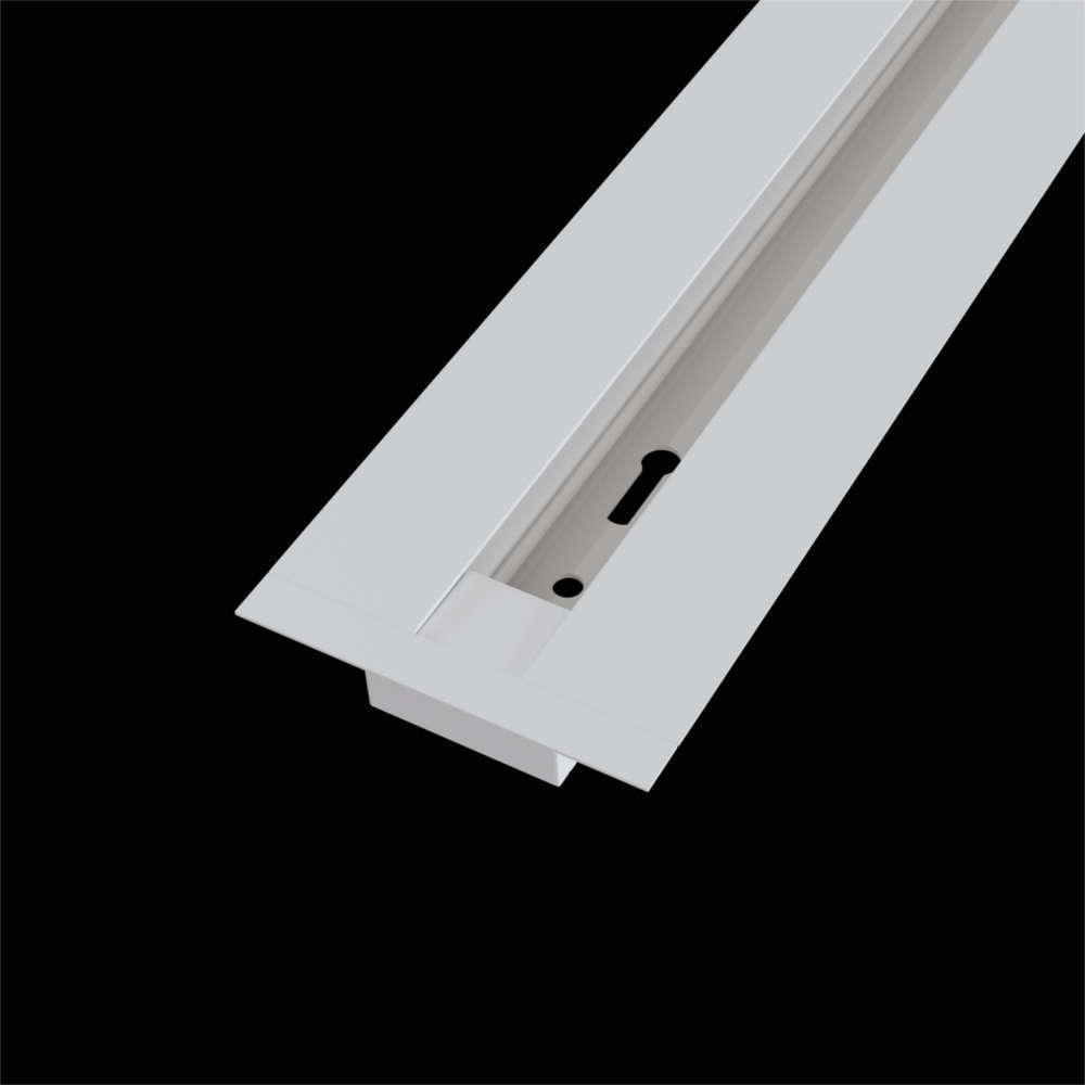 Релса за вграждане за релсово осветление 220V, алуминий, бяла, включена тапа и захранващ модул, 2 метра