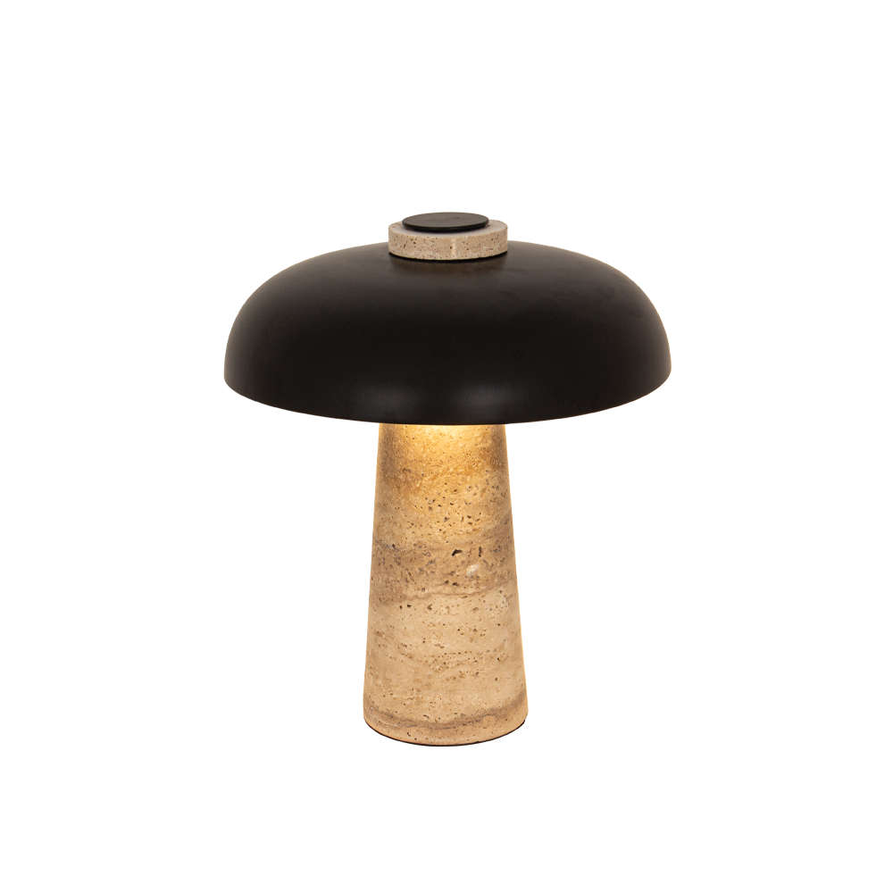 Настолна лампа Viokef LORA 4337400 с 3xG9 фасунги (без лампи), корпус от естествен травертин и метален абажур в черно. Комбинацията от камък и метал създава модерен и луксозен акцент. Подходяща за хол, спалня и стилни интериори.