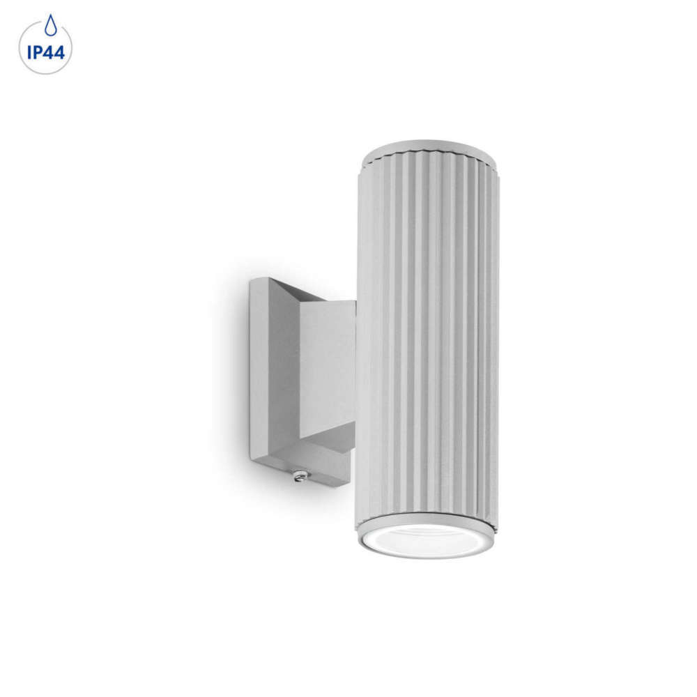 Стенна лампа IP44 с фасунги 2xGU10, алуминиев корпус в сив цвят, дифузер от закалено стъкло