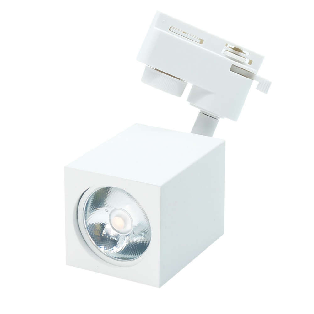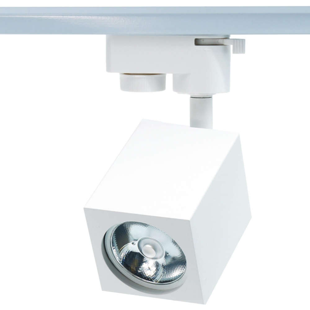 Квадратен спот за релсов монтаж с фасунга GU10, алуминий, бял мат