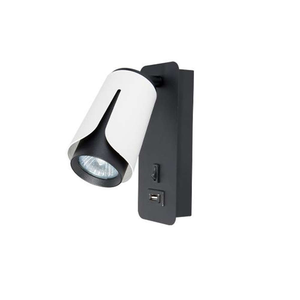 Аплик за стена с ключ и USB, фасунга GU10, цвят бял мат и черно