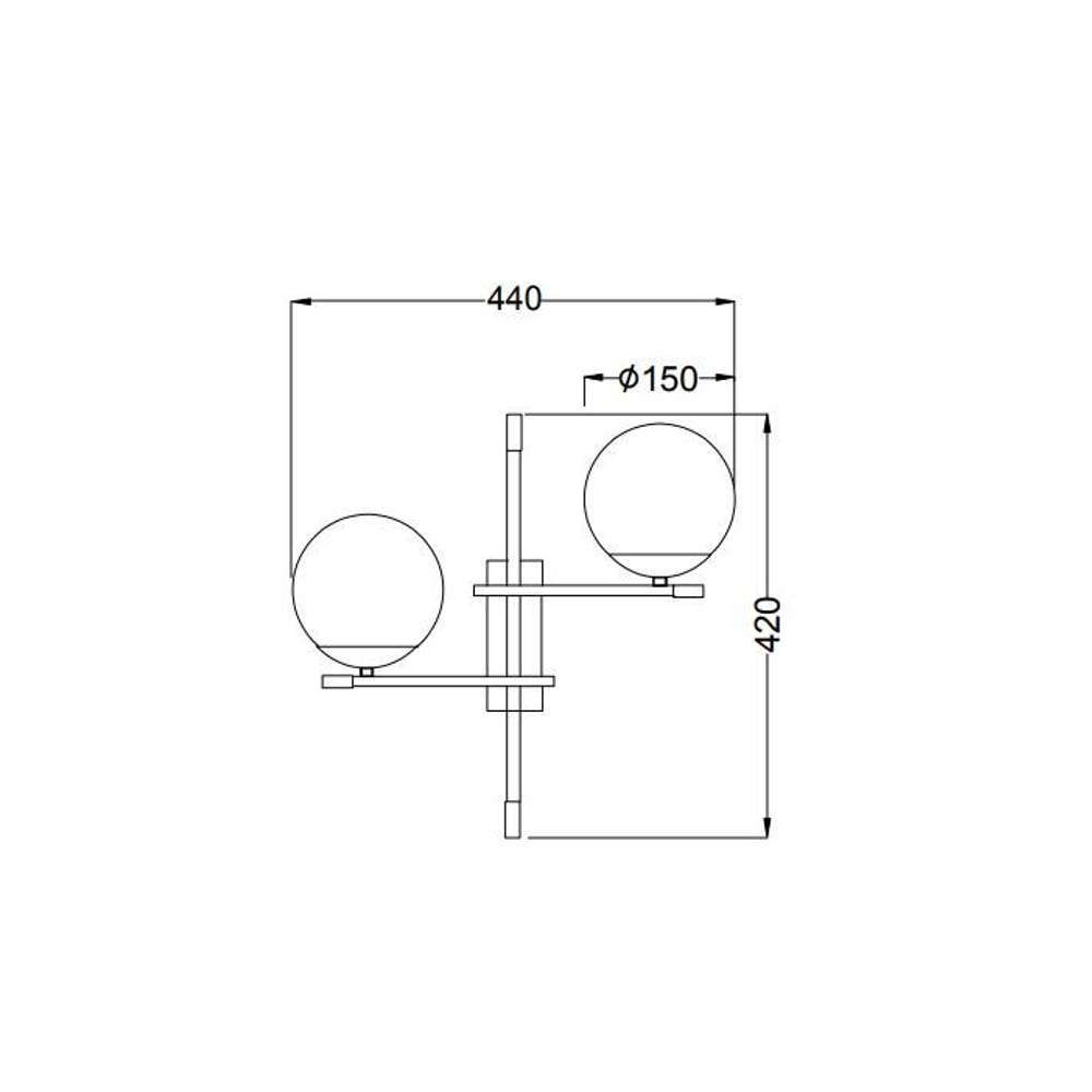 Модерен аплик за стена, фасунги 2xE14, метално тяло в цвят черен мат и месинг, бели стъклени колби