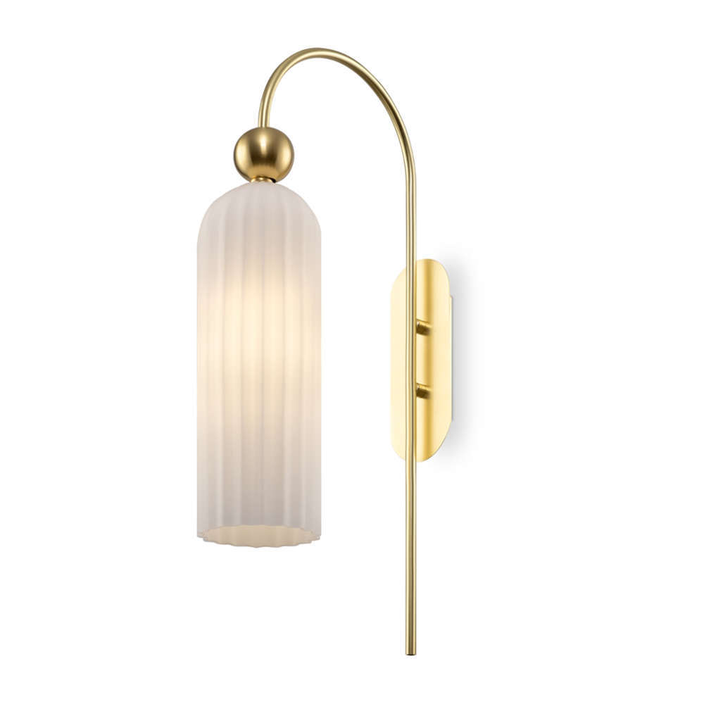Стенна лампа метал и стъкло, цвят месинг с чашка в цвят опал, 220V, IP20, фасунга Е14