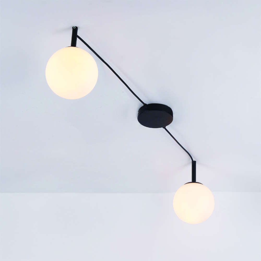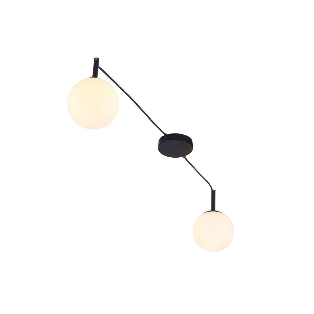 Плафониера за таван 220V, фасунги 2xE14, метал и стъкло, цвят черен/бял