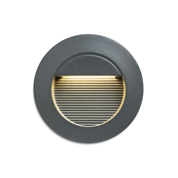 Кръгла стенна лампа за вграждане LED 3W, 220V, 94lm, 3000K, IP65, цвят антрацит