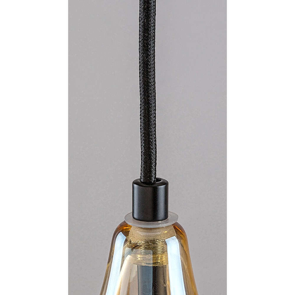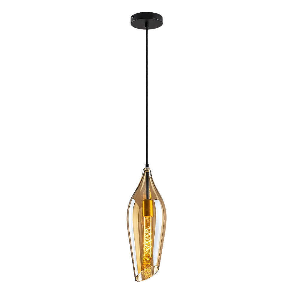 Висящо осветително тяло с фасунга E27, метал и стъкло в цвят кехлибар, цвят черен мат