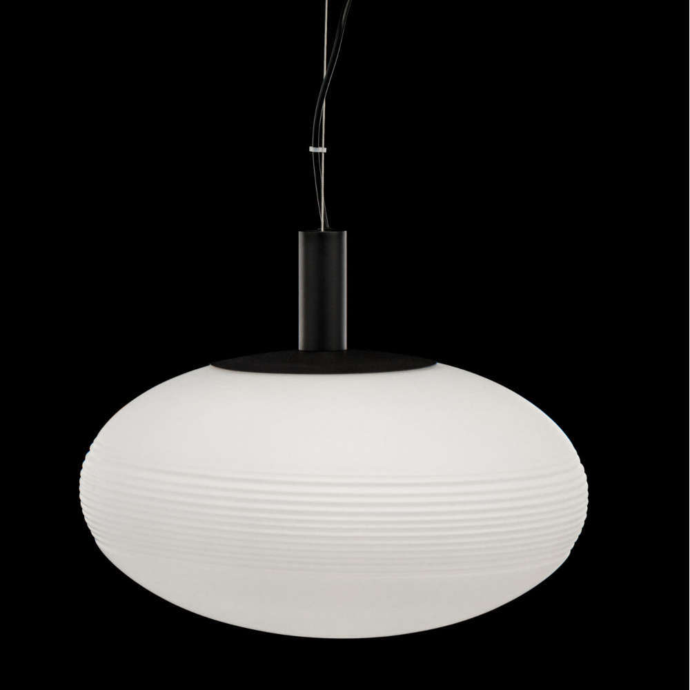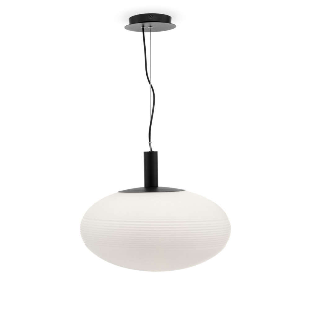 Висяща лампа за таван, фасунга Е27, метално тяло в цвят черен мат, стъклен опалов абажур