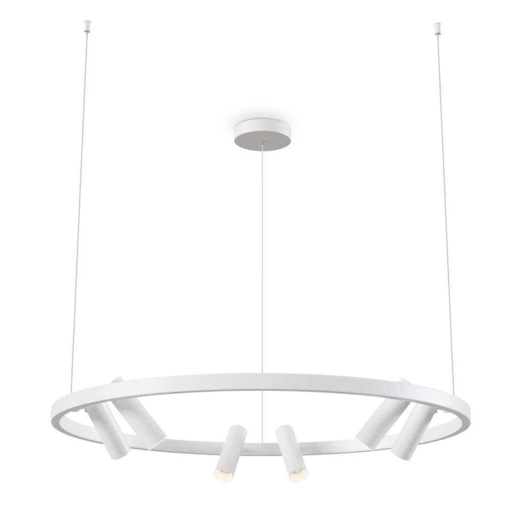 Пенделът Maytoni Satelite e направен от метал и акрил, в красива кръгла форма с мощност от 3900lm и цветова температура от 3000К. Серията Satelite се характеризира със своите овални форми, чисти линии и цветове така, че да пасва идеално във всеки интериор. Тялото разполага с метална рамка с шест въртящи се LED спота: хоризонтално до 340° и вертикално до 90°, което помага за пълно осветяване на стаята. Сами можете да изберете височината, на която пенделът да виси, между 300 и 1200 мм., както и да настроите спотовете да светят хоризонтално или вертикално.