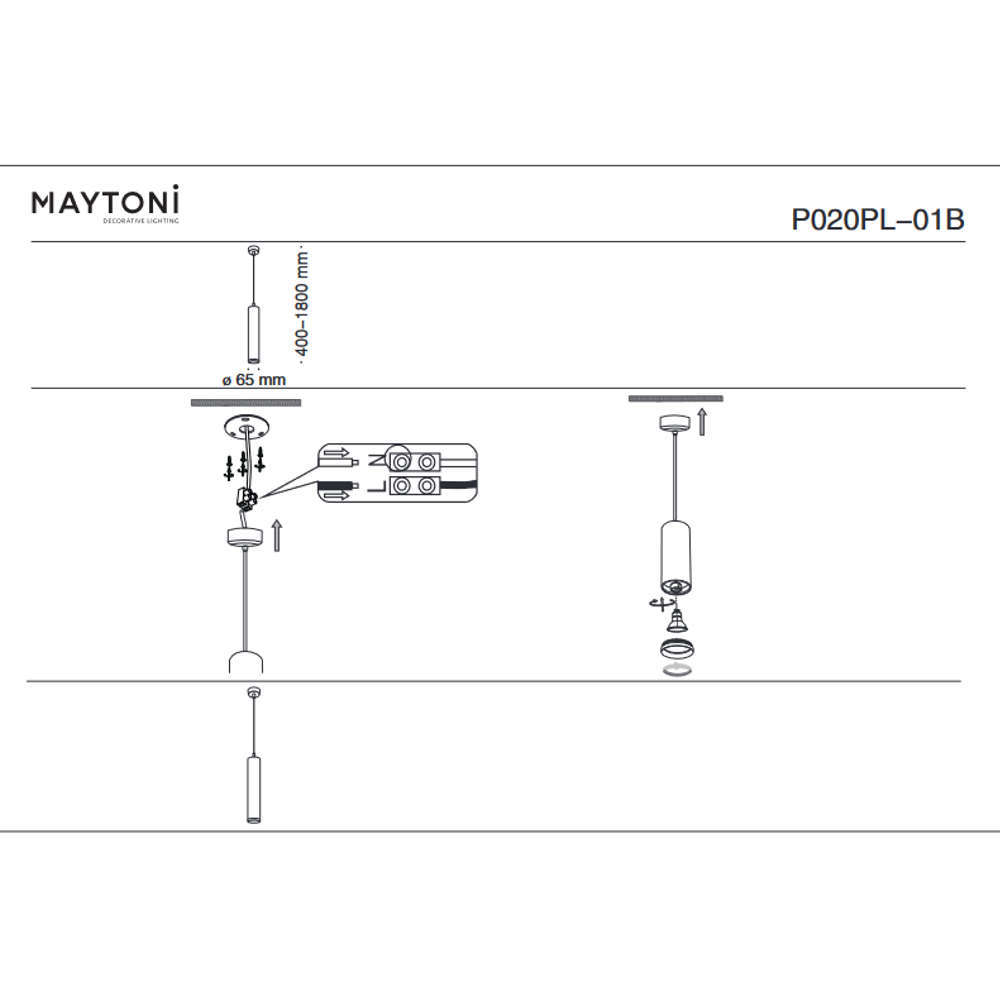 Пендел Maytoni Shelby P020PL-01B - луксозна лампа за окачване серия Maytoni Shelby предназначена за осветяване на всякакви жилищни или търговски помещения. Осветителното тяло се вписва перфектно във всеки модерния интериор. Използват се LED лампи с основа тип GU10. Корпус изработен от висококачествена алуминиева сплав прахово боядисан в черен мат цвят. Размерът на тялото е ф65x300m, а общата дължина с кабела, който може да се скъсява е 180см.