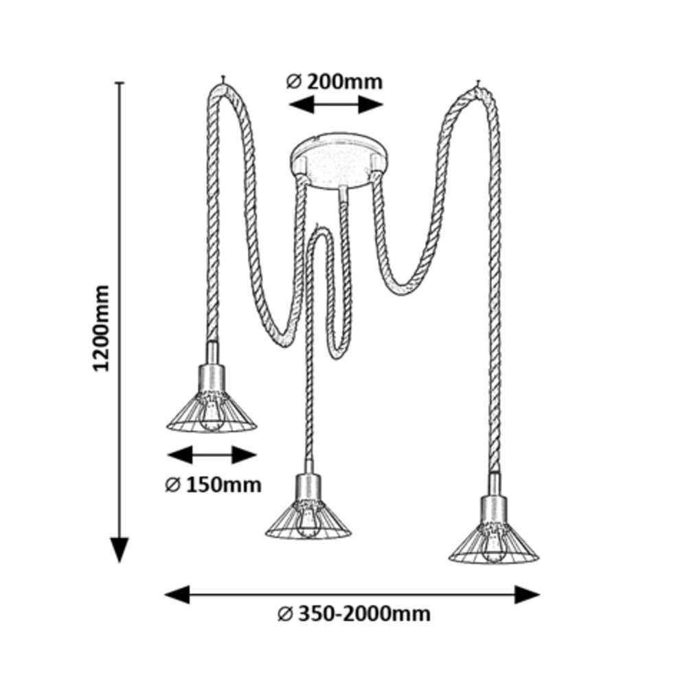 Пендел Rabalux Daryl 5272 - Rabalux - висящо осветително тяло за лампи 3xE27/40W/230V. Индустриалният пендел се характеризира с приятен и функционален дизайн. Лампата е изработена от метал, боядисана в черно, с добавени конопени обвивки. Индустриален пендел Rabalux Daryl 5272 интересно допълнение на интериора към дома или заведение.