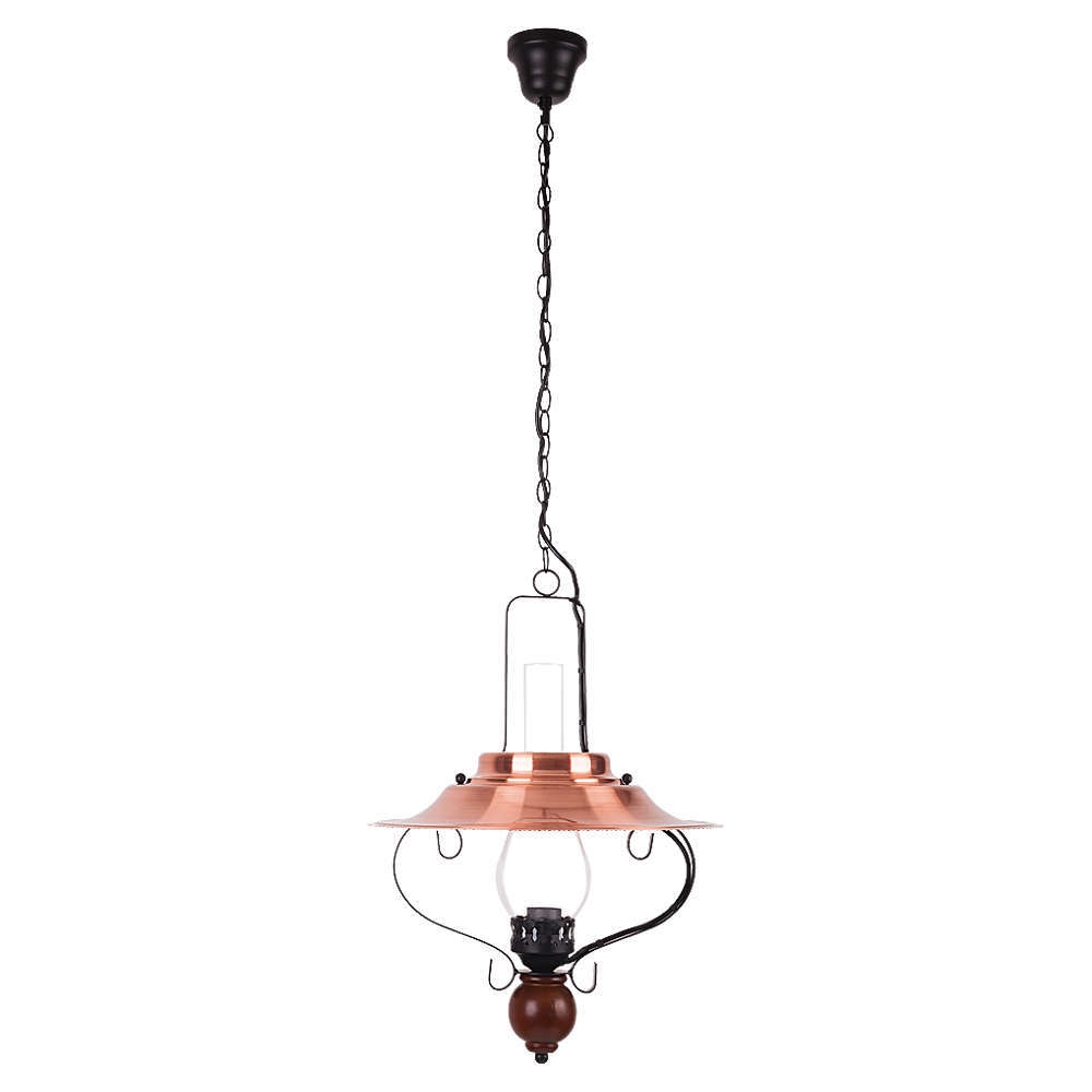 Пендел за таван Rabalux Enna, метално тяло с дървени мотиви, стъклен разсейвател с форма на газена лампа, без светлинен източник