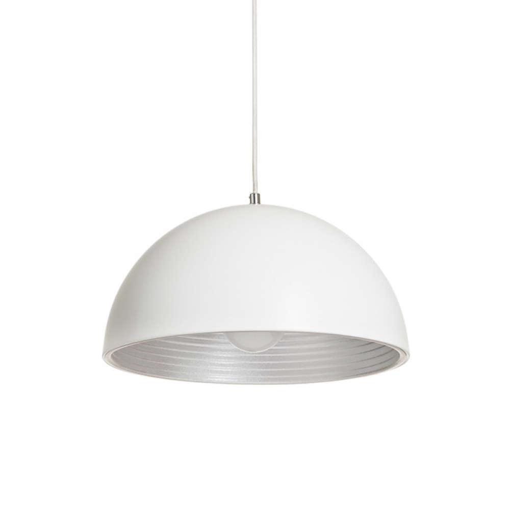 Ретро висяща лампа с метален абажур в бял мат и лакирана отвътре сиво-сребърна повърхност фасунга Е27