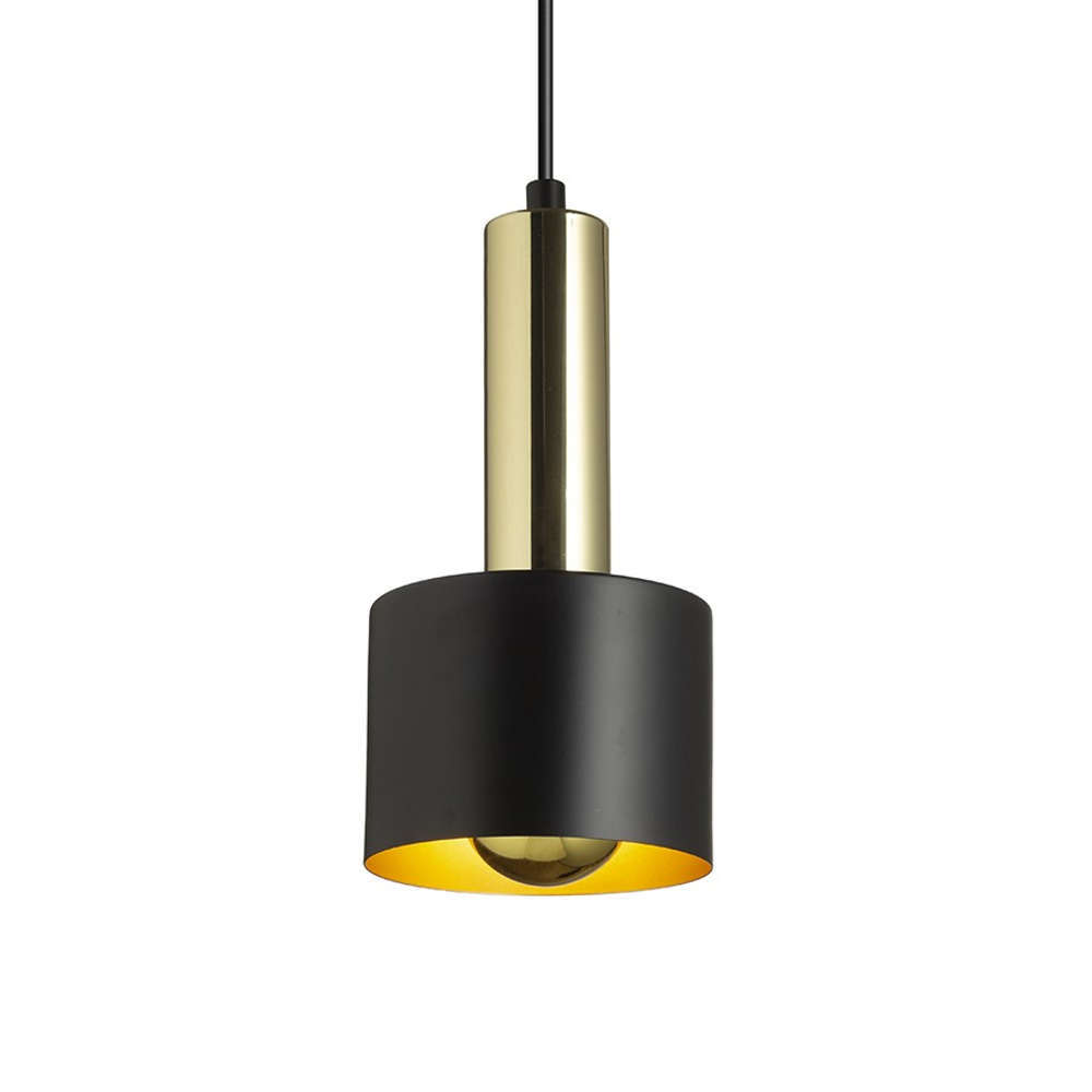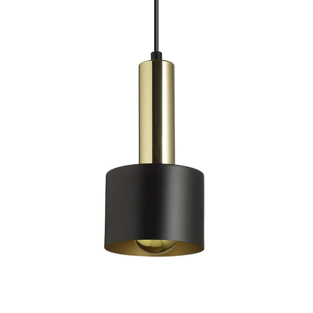 Модерен пендел с фасунга Е27, алуминий, цвят черен мат, месинг, злато, ф200x1430mm, текстилен кабел