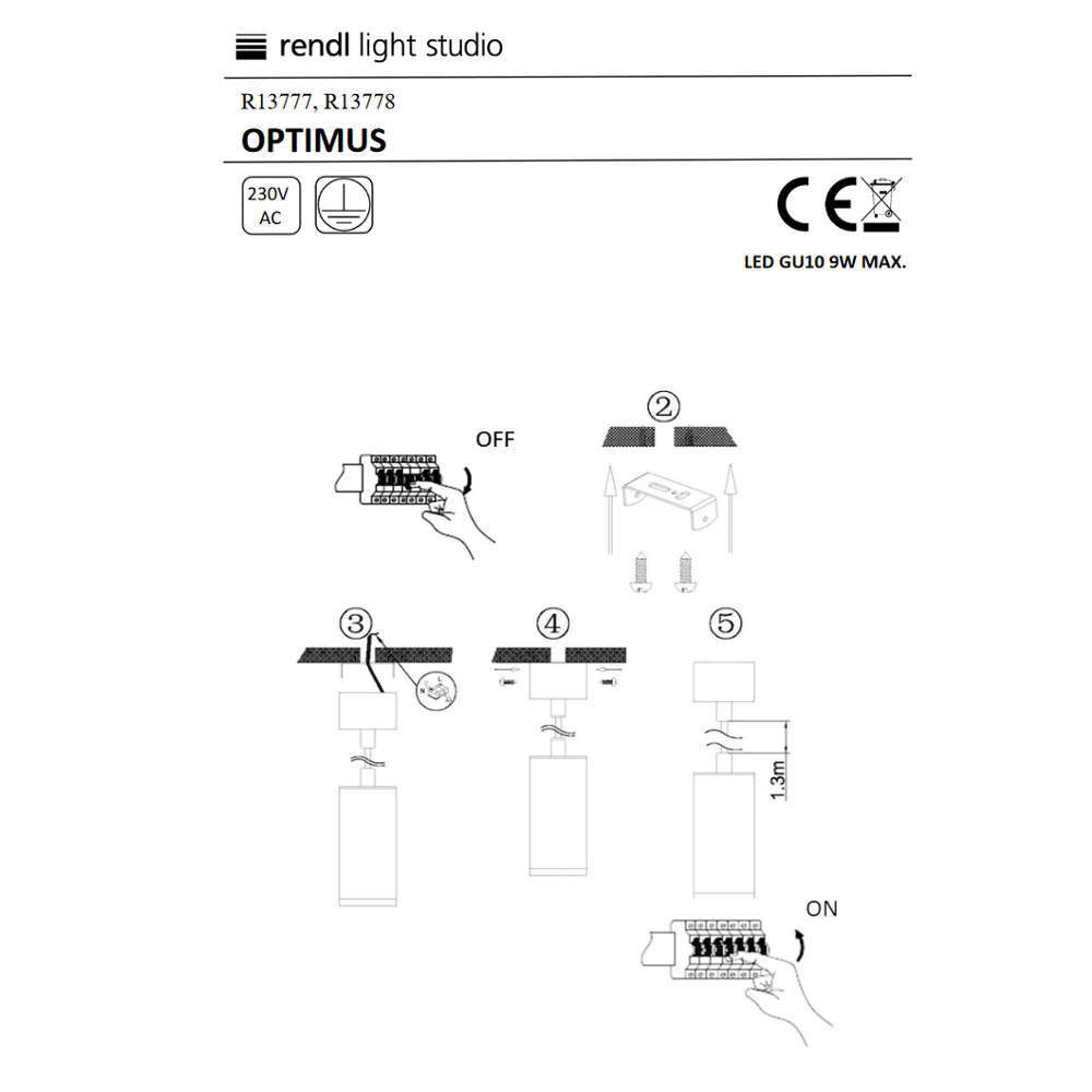 Пендел Rendl Light Studio OPTIMUS R13777 - нов модел висяща лампа от колекцията OPTIMUS Zoom, принадлежаща на чешката марка за осветление Rendl Light Studio. Изработен е от алуминий и може да бъде закупен в черни и бели текстурирани покрития. Това е пендел е с класическа тръбна форма, където цилиндричното тяло е с възможност за регулиране на светлинния сноп чрез zoom система (от 10 до 50°). Може да се използва като лампа за спалня над нощно шкафче, като лампа за всекидневна или осветление над барплот. Източник на светлина за неговото използване е крушка GU10, която не е включена. Серията oсветителни тела Rendl Light Studio OPTIMUS Zoom се допълват от спотове за таван и релсови осветителни тела.