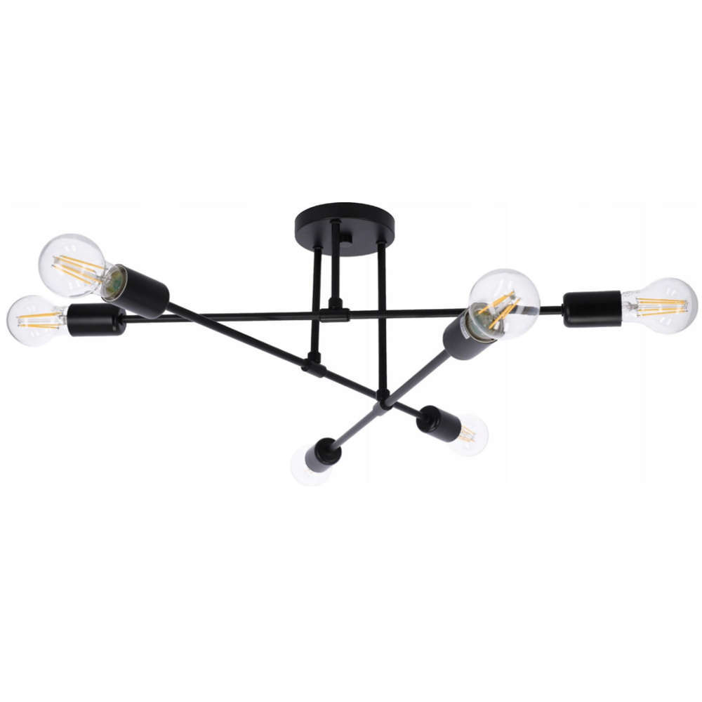 Осветително тяло за таван с 6 фасунги Е27, метал, цвят черен мат