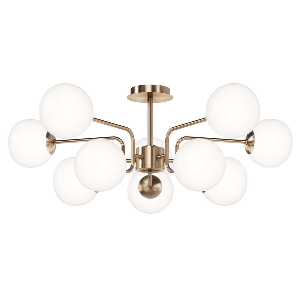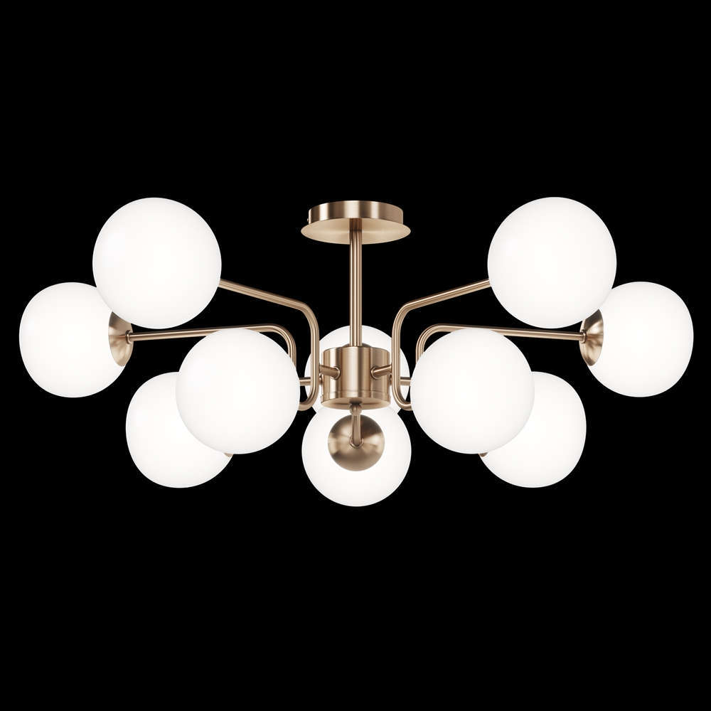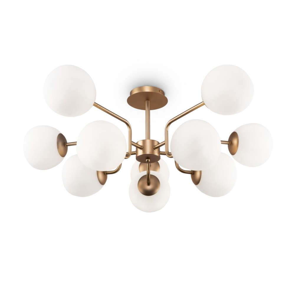 Полилей Maytoni Erich MOD221PL-10G съчетава в себе си уникален дизайн в най-добрия си вид, който създава редица възможности за аранжиране на пространството във вашия дом. Използвайки го, осветлението лесно ще се впише в помещения с класическа и модерна атмосфера. Тази функционална таванна лампа изработена от практични и издръжливи материали, гарантира на своите потребители радост и удовлетворение дълги години. Комбинация от месинг и бели цветове на абажурите ще я отличава както в светъл, така и в тъмен интериор. Материалите, използвани в лампата са метал и стъкло, като има място за 10 боя E14 LED крушки - полилеят е оборудвана с фасунги Е14. Избирайки този модел осветителни тела, вие не само ще осветите правилно избраните места, но и ще получите възхитителна и приятна за окото декорация, която ще придаде на интериора неповторимо излъчване и елегантност, подчертавайки своите детайли и декор сред останалите мебели и интериорни аксесоари. Полилей Maytoni Erich MOD221PL-10G има сертификати за съответствие и се покрива от 3 годишна гаранция на производителя.