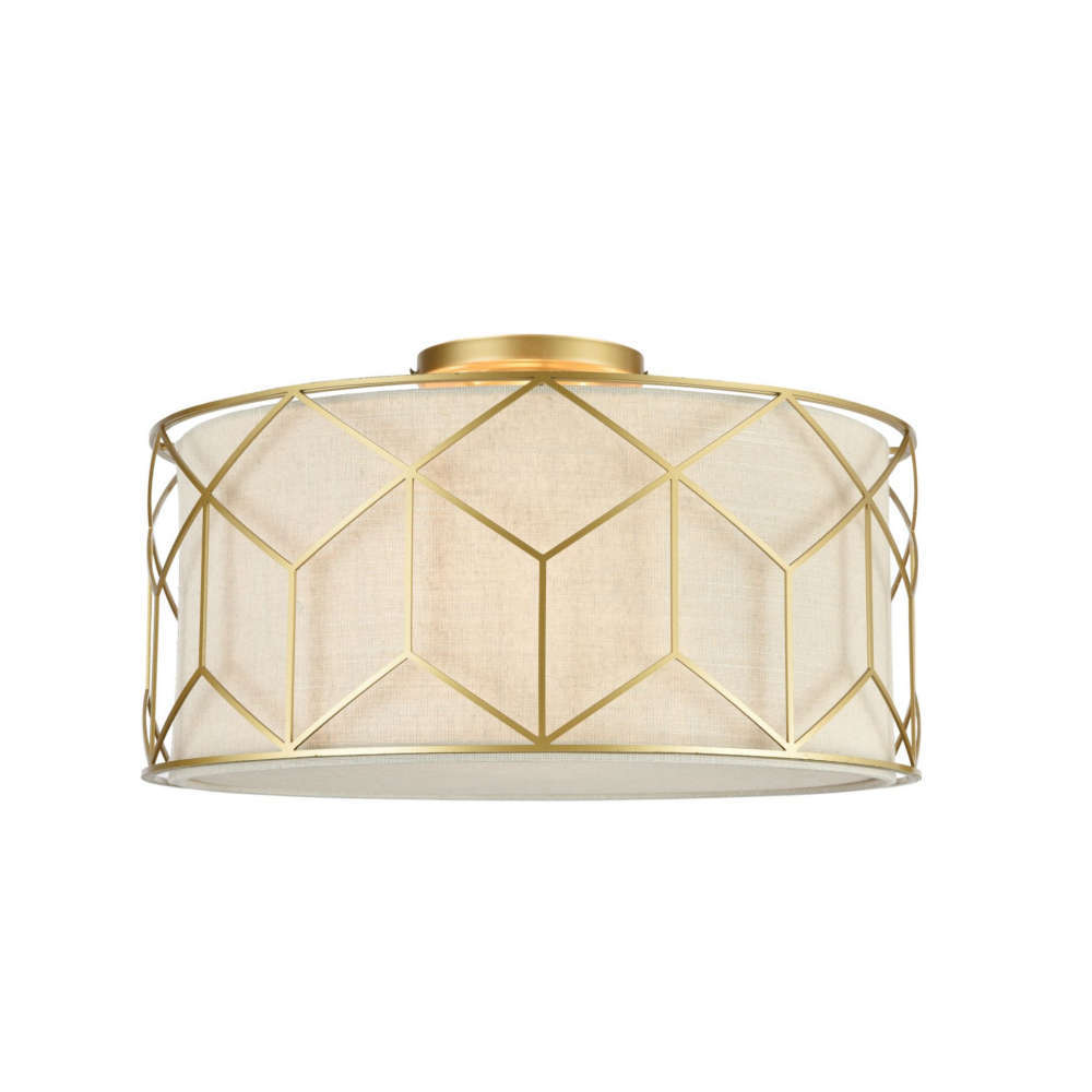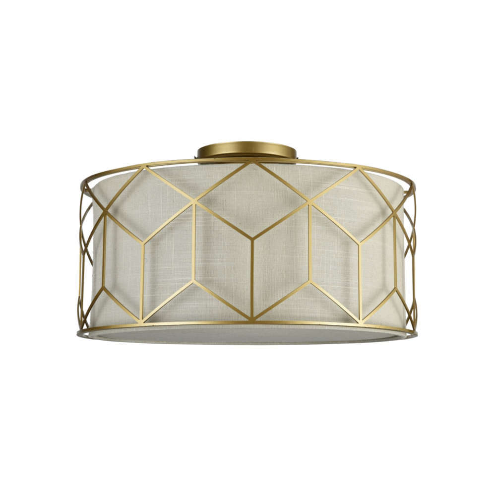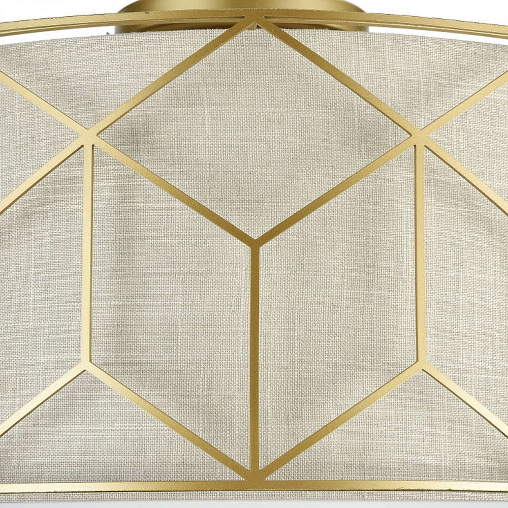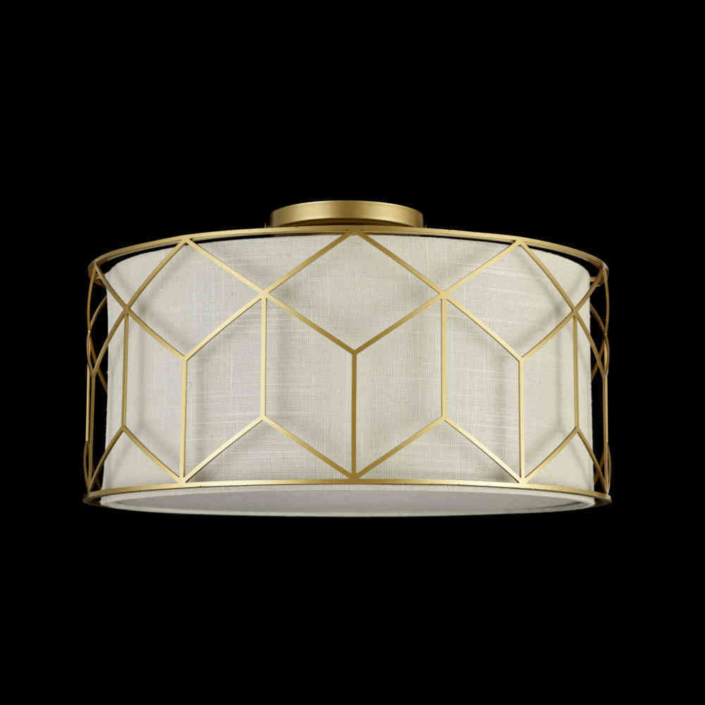 Луксозен плафон с 3 фасунги Е27, 220V, IP20, метална решетка в цвят злато мат, PVC основа и ленен абажур.