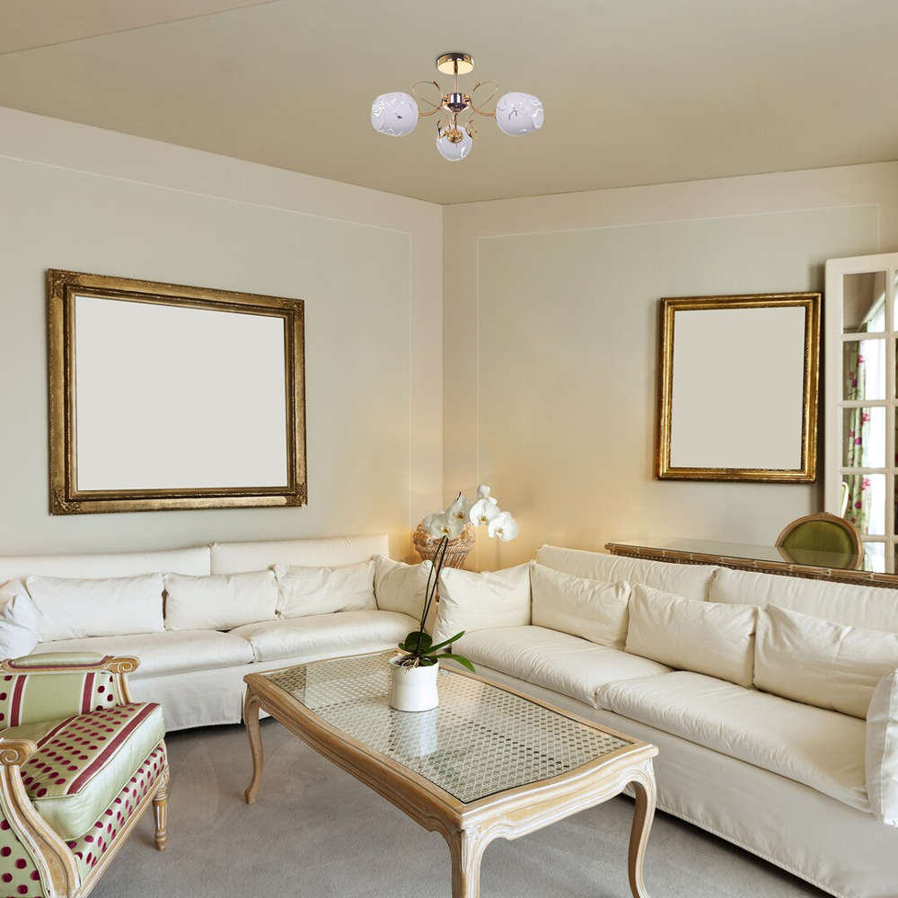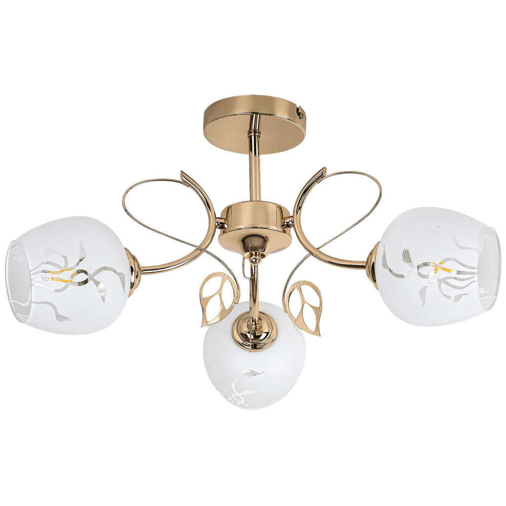 Осветително тяло за таван 220V, IP20, метал в цвят злато и рисувано стъкло