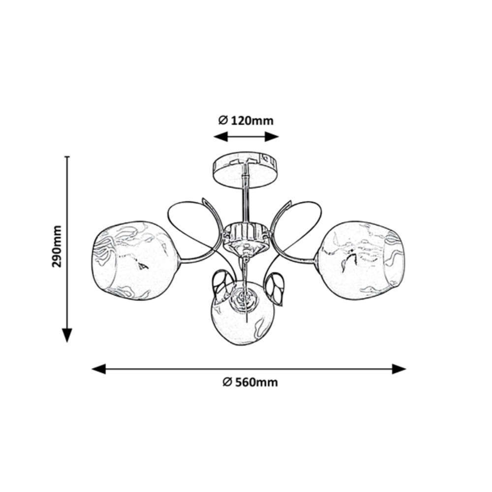 Полилей Rabalux Fauna 5098 - лампа за таван в класически стил, която може да бъде елегантно допълнение към вашата традиционна всекидневна или спалня. Рисуваните бели стъклени абажури са прикрепени към метални елементи в цвят злато. Полилеят се монтира към тавана с помощта на кръгла декоративна основа. Може да се използва с три крушки Е27, всяка с мощност до 40W. Размерите на Rabalux Fauna са: диаметър 560 мм, разстояние от тавана 290 мм, монтажен диаметър 120 мм. Полилеят се доставя без включени крушки.
