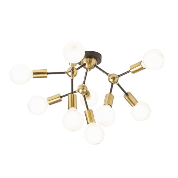 Дизайнерски полилей от метал с 9 фасунги Е27, цвят полиран месинг и черно.