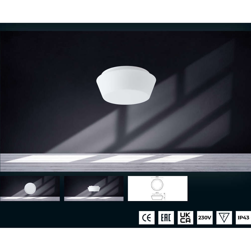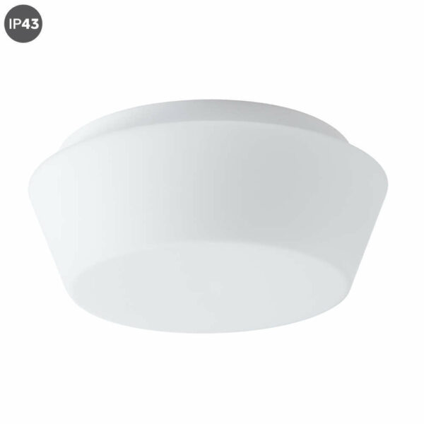 Стъклена плафониера IP43 с фасунга Е27, корпус от метал, абажур от стъкло TRIPLEX OPAL