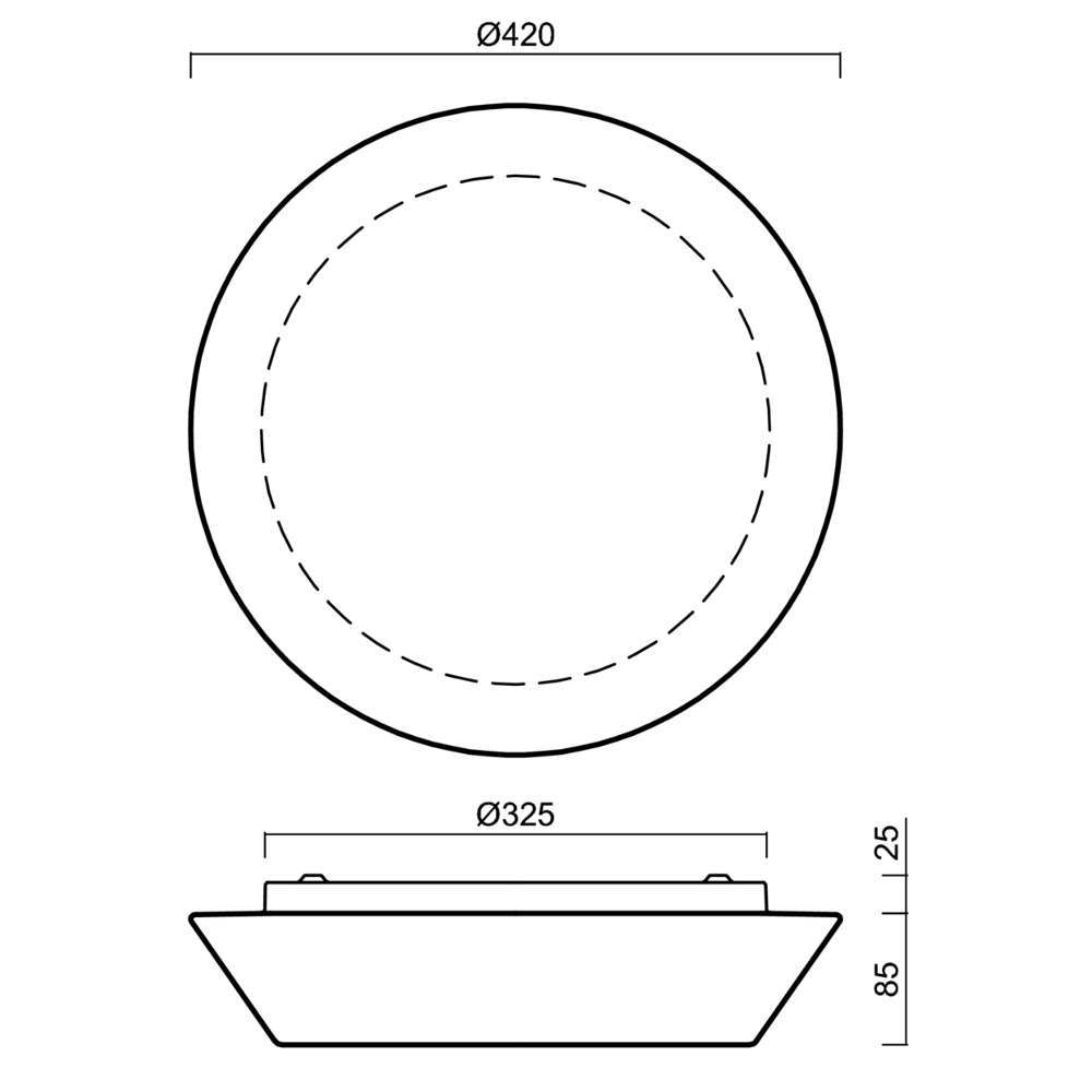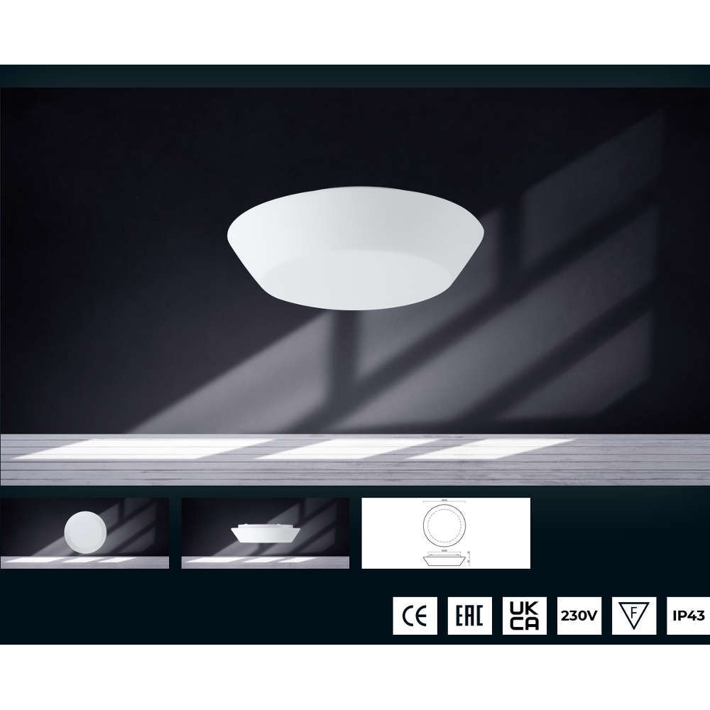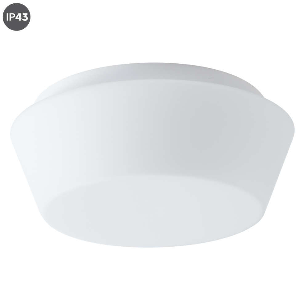 Стъклена плафониера IP43, 220V, фасунги 2XE27, метална основа в бял цвят със стъклен опал триплекс абажур