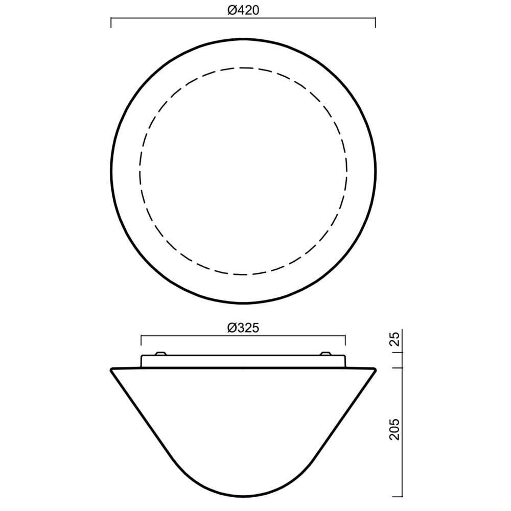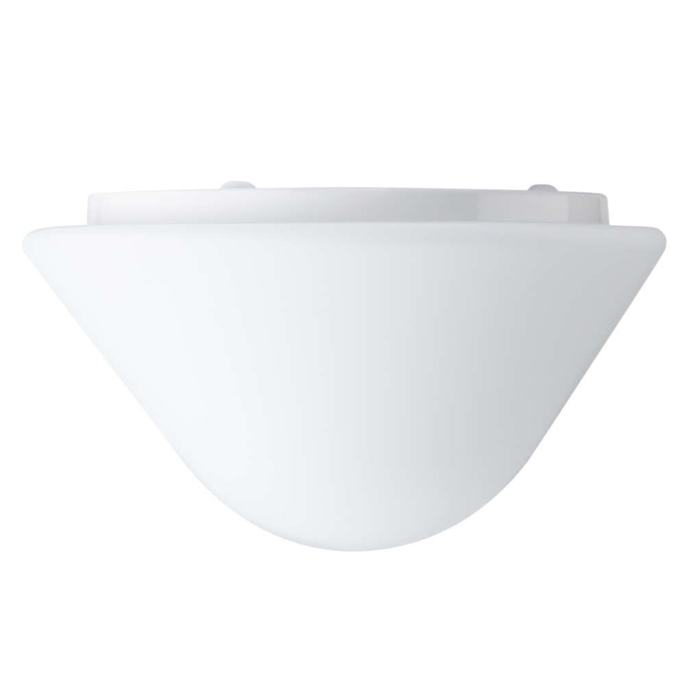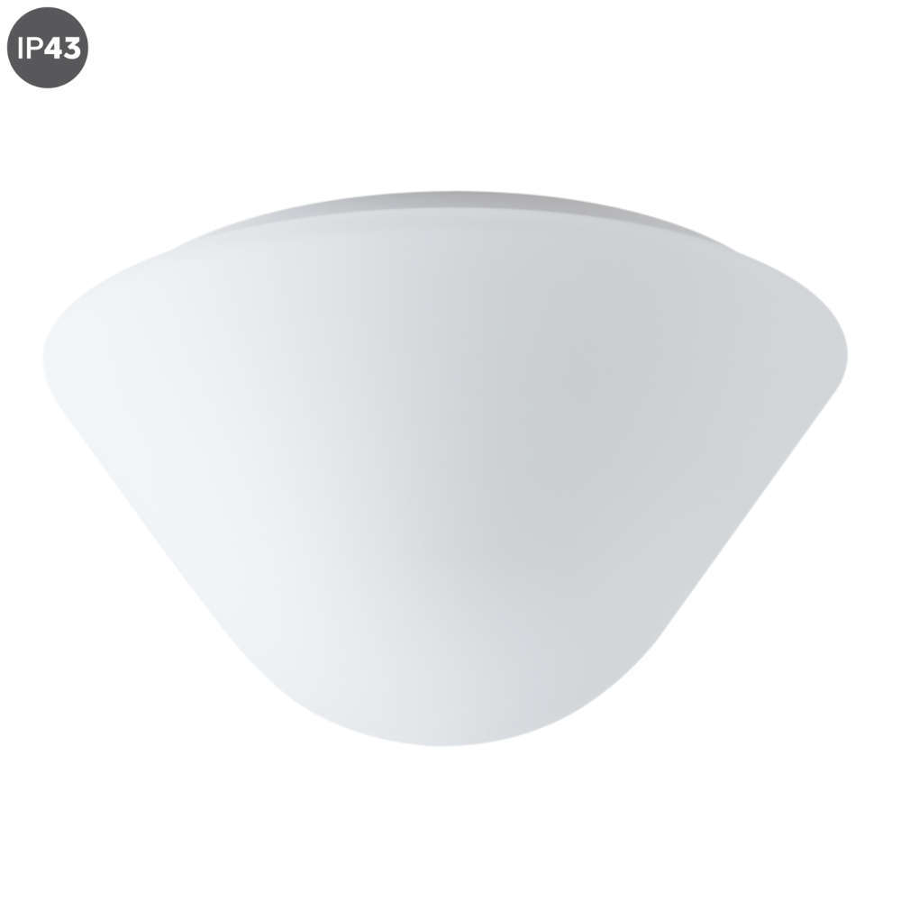 Стъклена плафониера IP43, 220V, фасунги 2xE27, метална основа в бял цвят със стъклен опал триплекс абажур