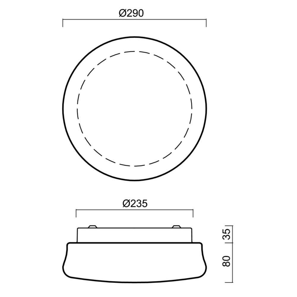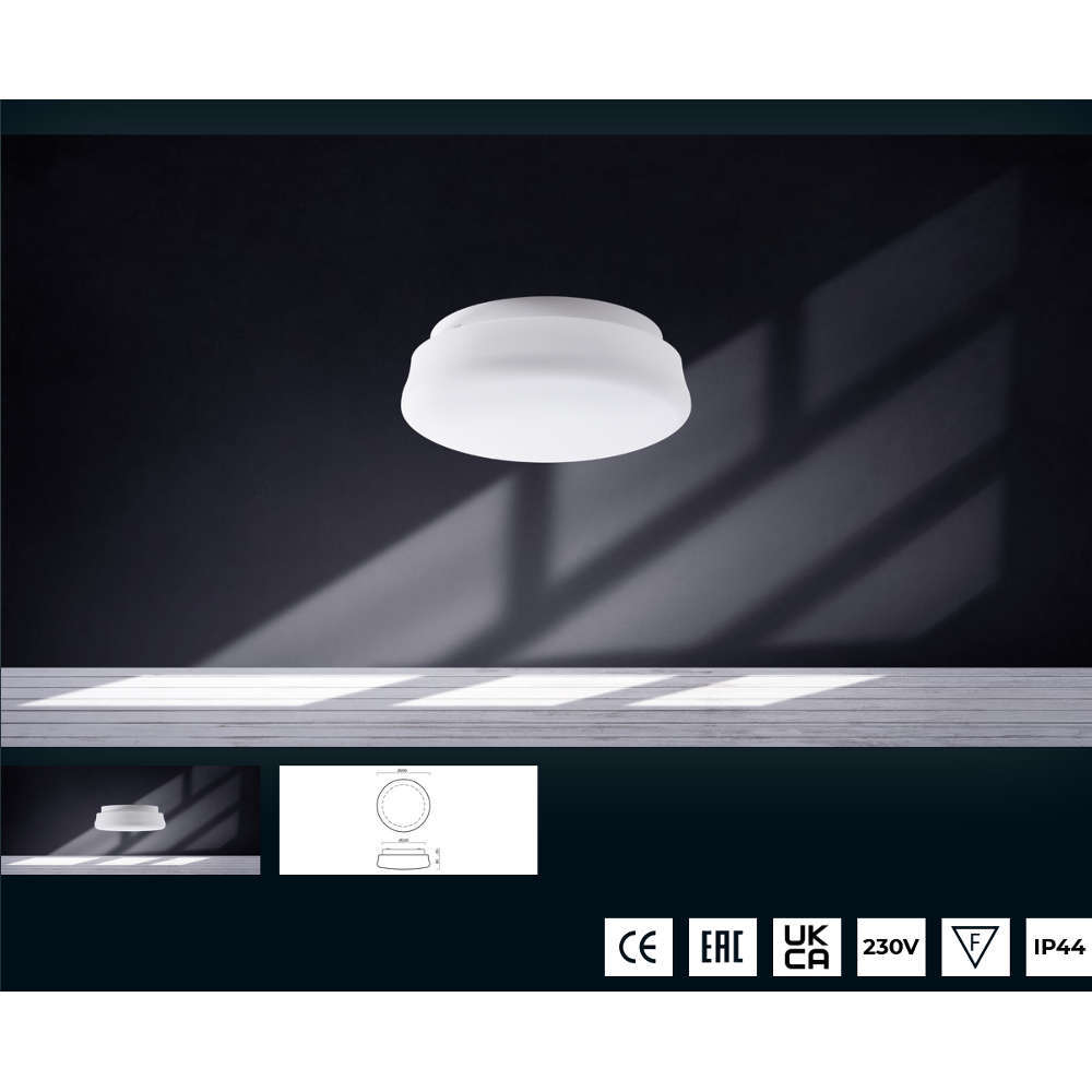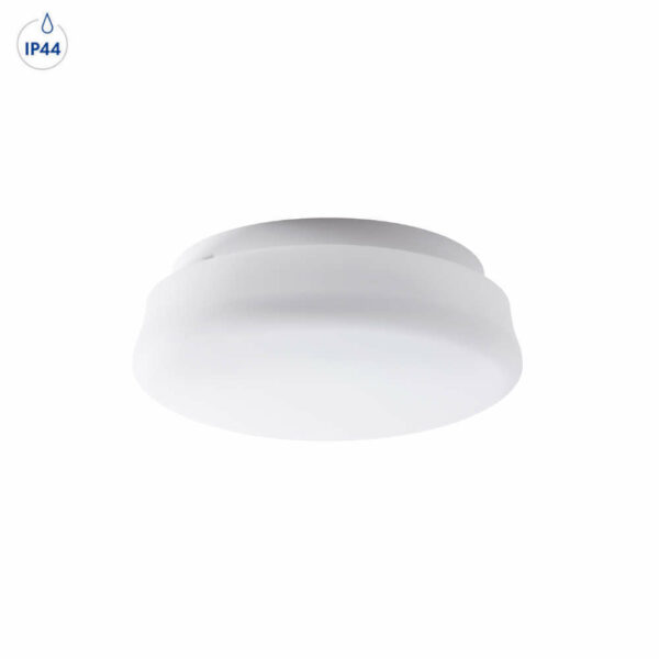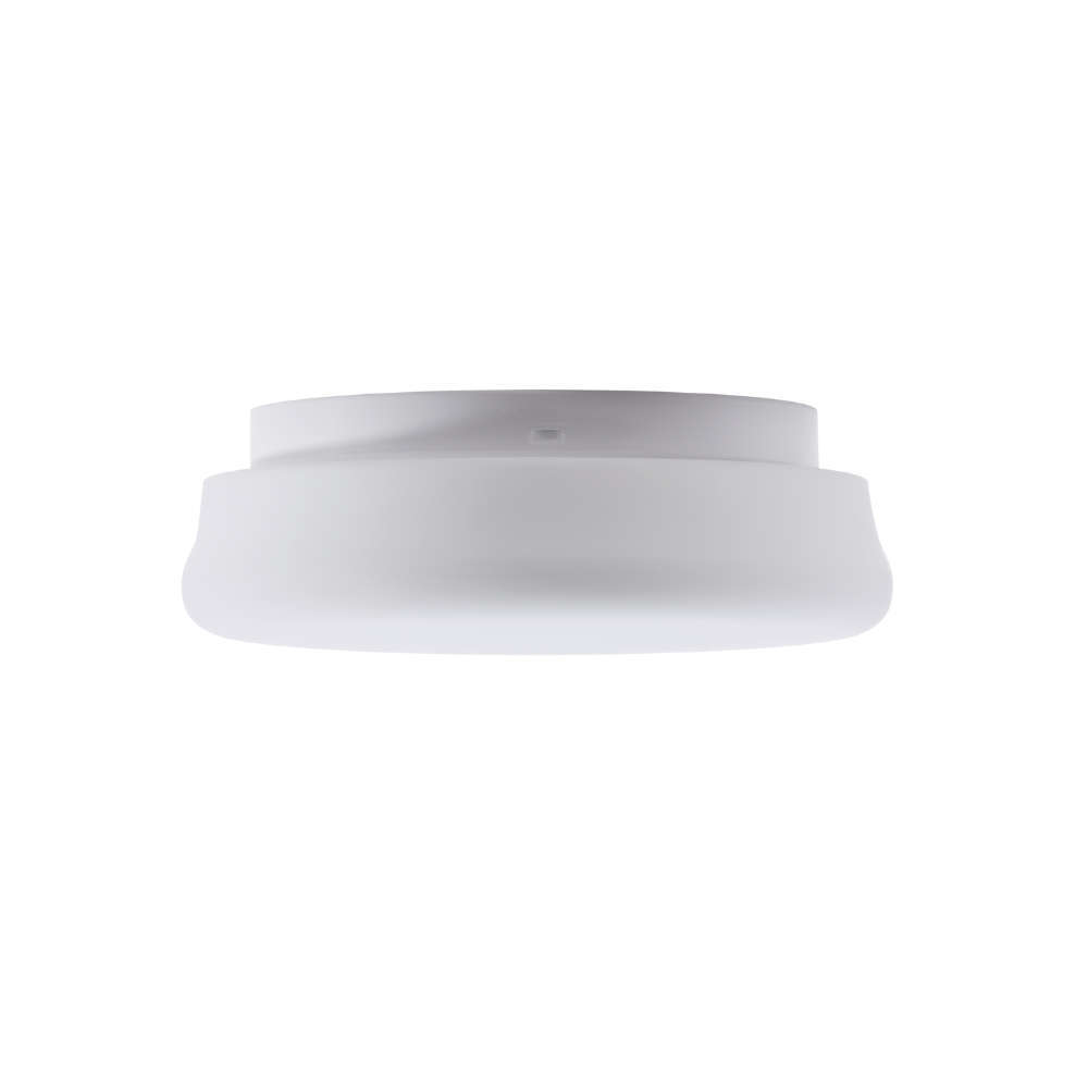 Стъклена плафониера IP44, 220V, фасунга E27, метална основа в бял цвят със стъклен опал триплекс абажур
