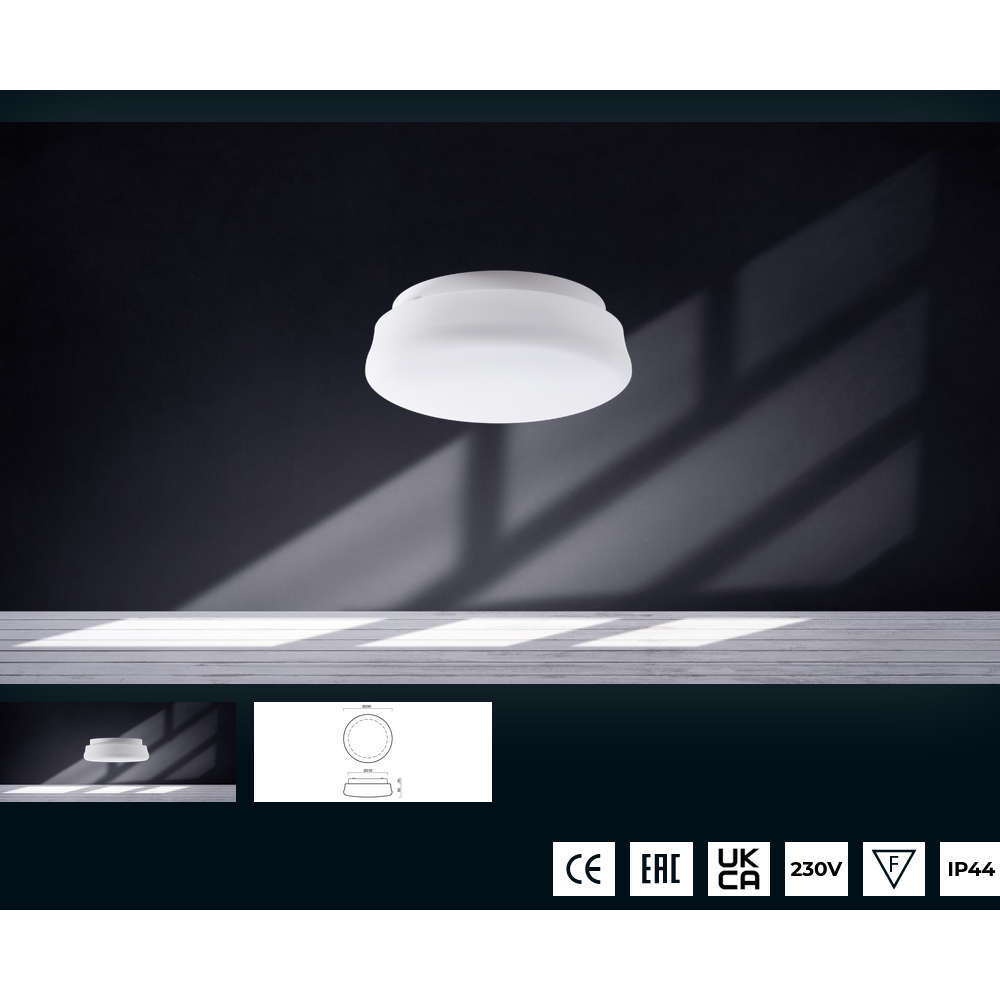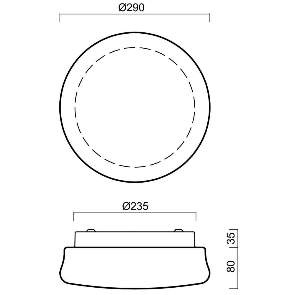 Стъклена плафониера IP44, 220V, фасънги 2xE27, метална основа със стъклен опал триплекс дифузер