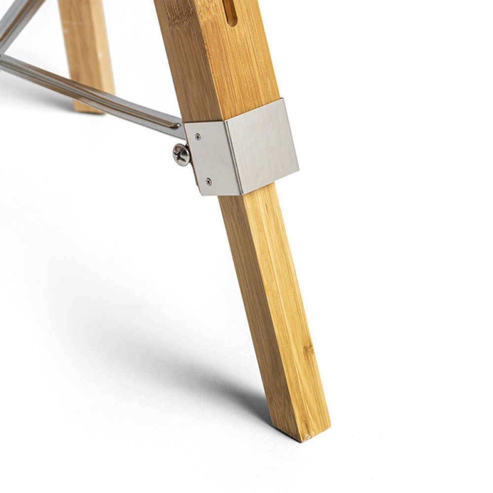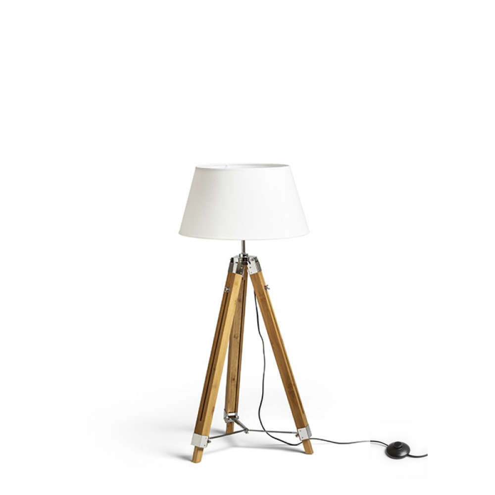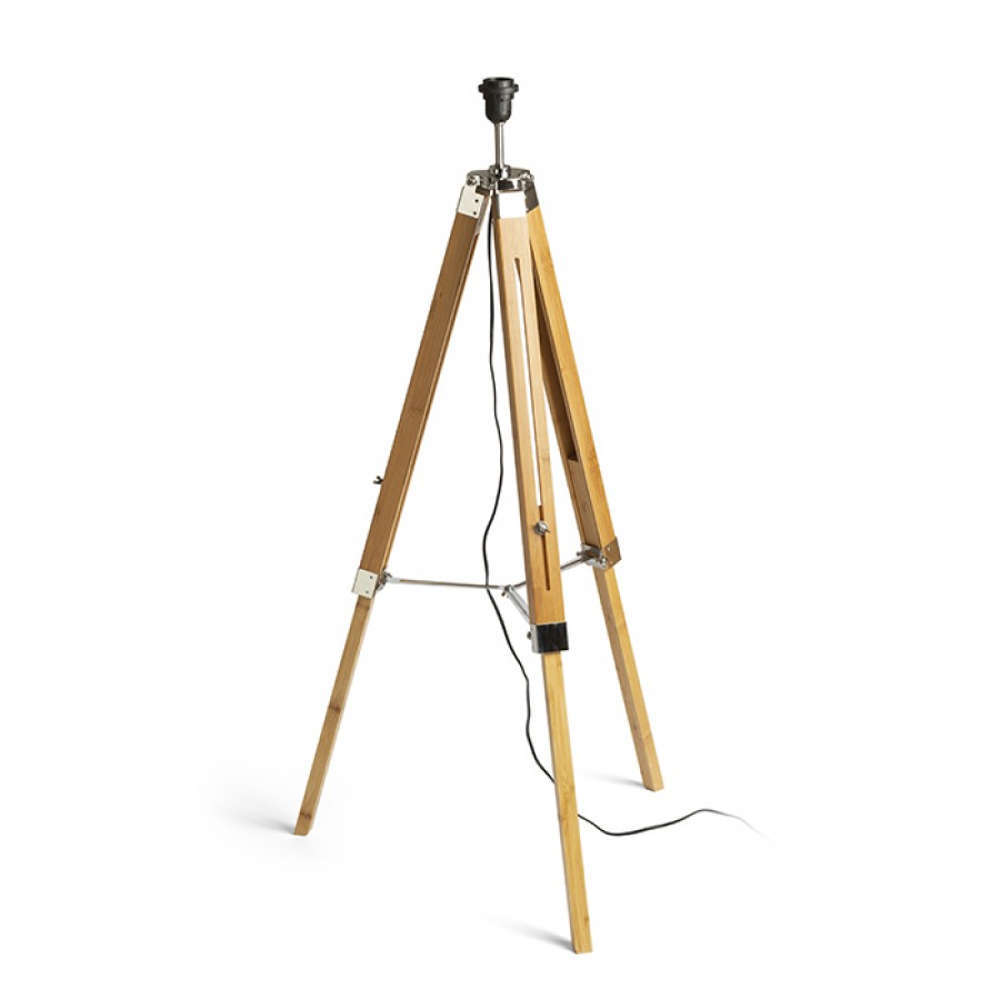 Трипод лампион с фасунга Е27, бамбук и метал в цвят хром, кабел с ключ, без крушка и абажур (поръчват се отделно)