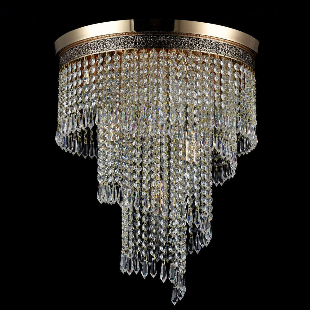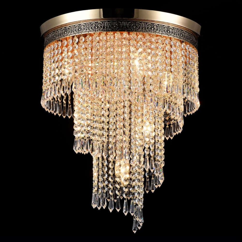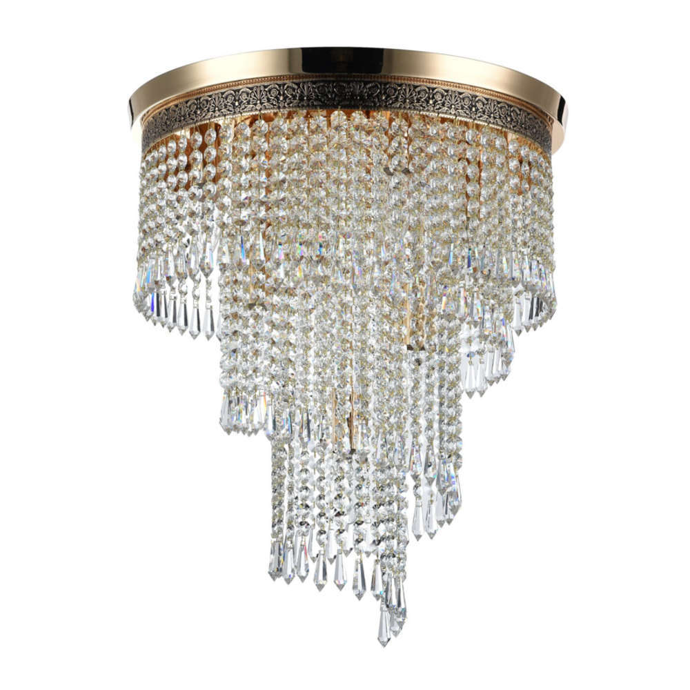 Кристален полилей с 7 фасунги Е14, ф420x500мм, тяло от метал в цвят месинг и антично злато и кристални висулки
