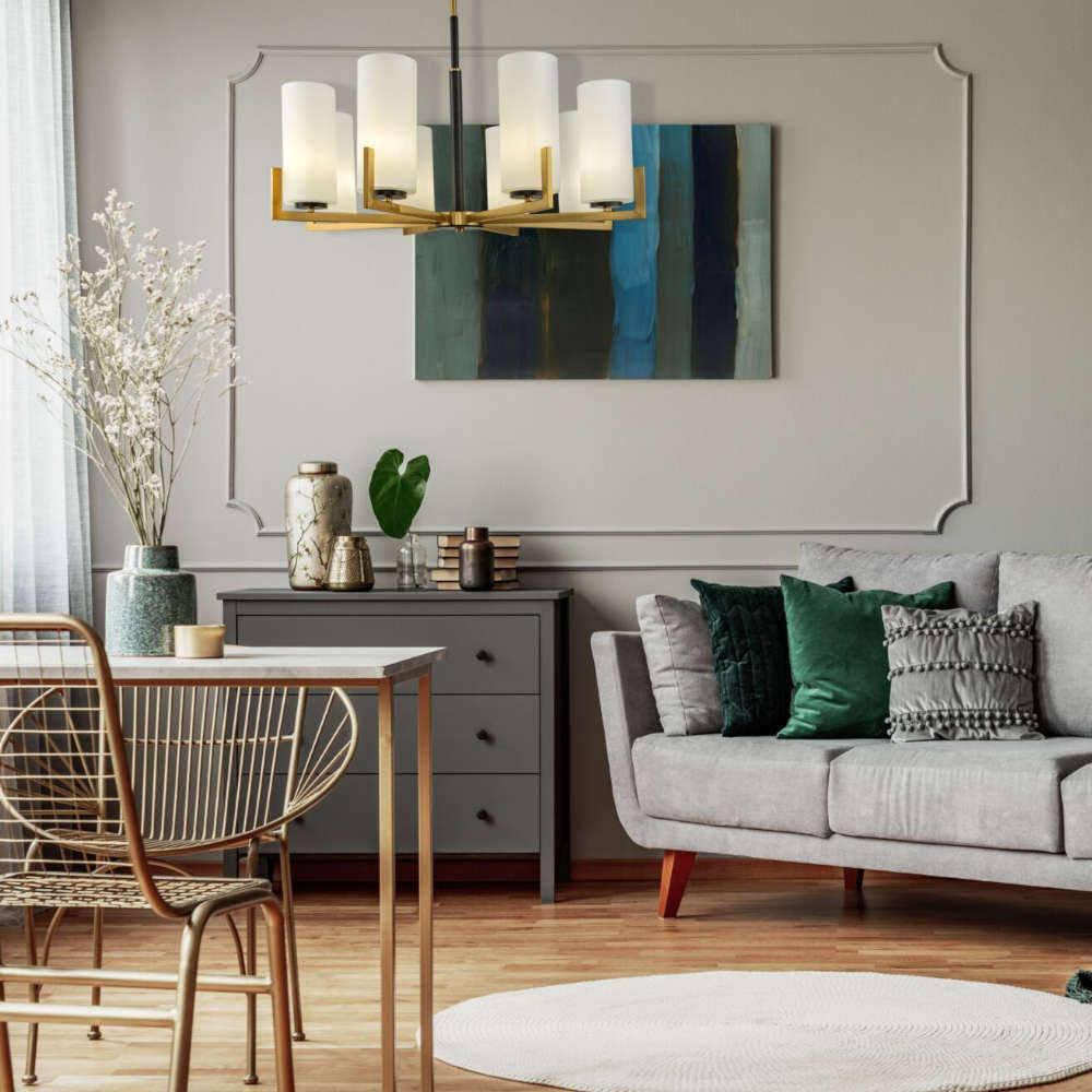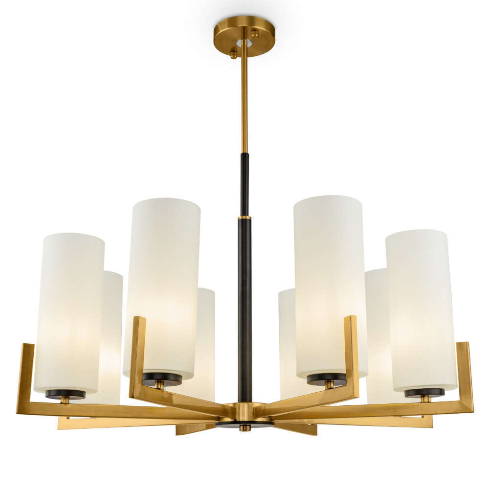 Луксозен полилей с бели стъклени опалови чашки, 8 фасунги Е27, регулиране на височината