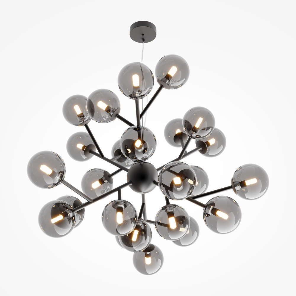 Модерен полилей в черен цвят, метално тяло и опушено стъкло, 24 фасунги G9, без крушки