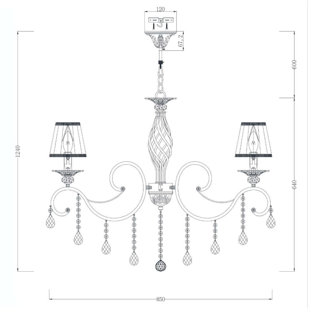 - кристални висулки по рамената и централния елемент