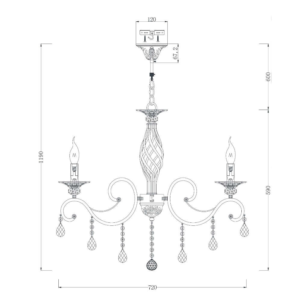 - кристални висулки по рамената и централния елемент