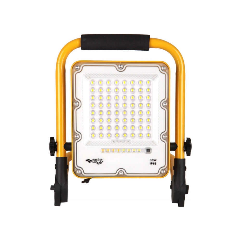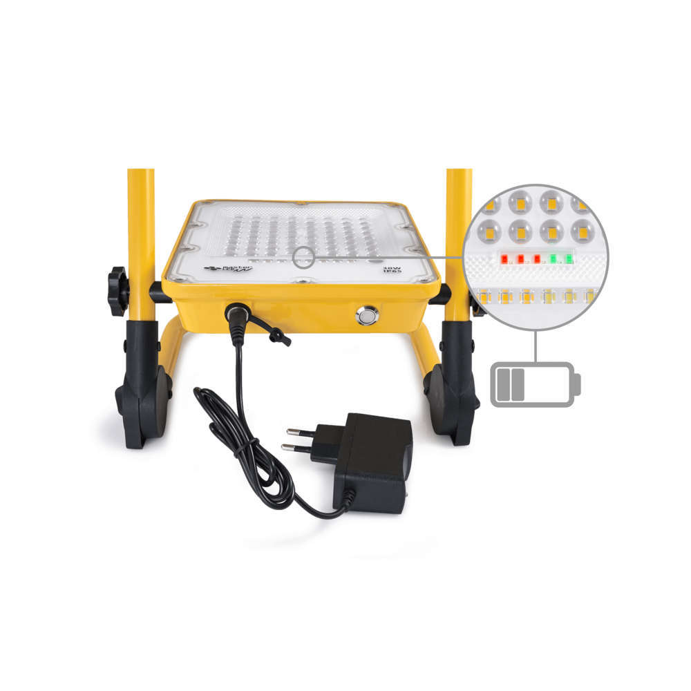 Работен прожектор 30W, 4500K, 500lm, IP65, степенно димиране, опция аварийни светлини, индикатор за състояние, вградена батерия и зарядно за 220V