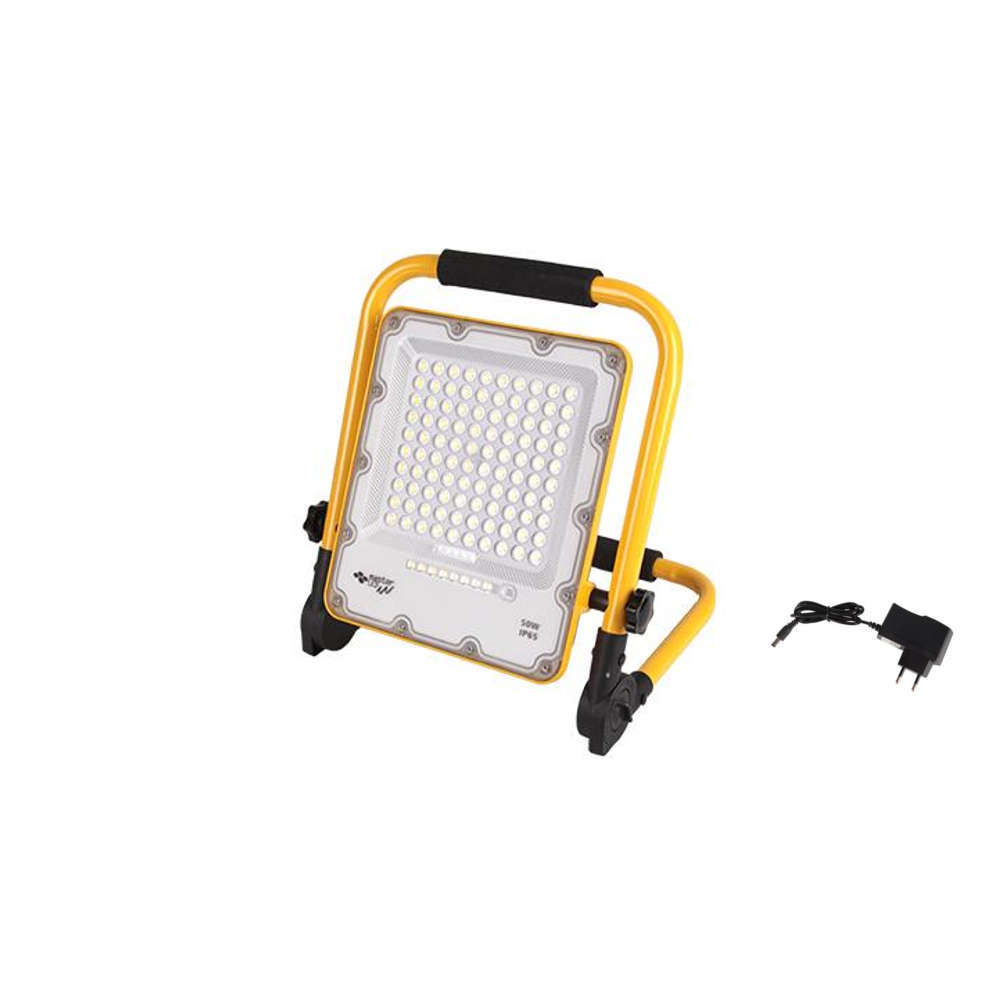 Работен прожектор 50W, 4500K, 8500lm, IP65, степенно димиране, опция аварийни светлини, индикатор за състояние, вградена батерия и зарядно за 220V