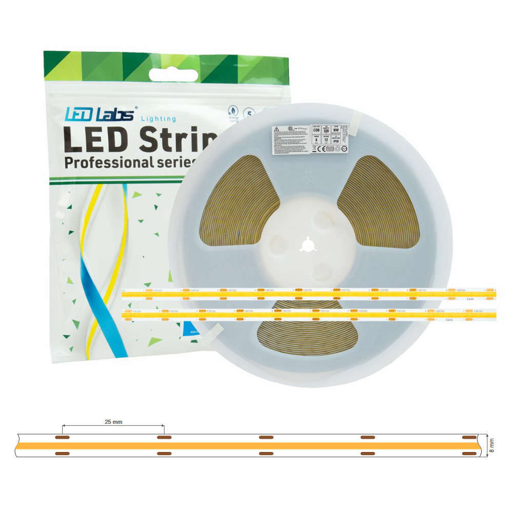 12V LED COB лента 8W, 800lm/m, 6500K, CRI>90, 180°, IP20, ролка 25 метра, обявената цена е за 1 линеен метър