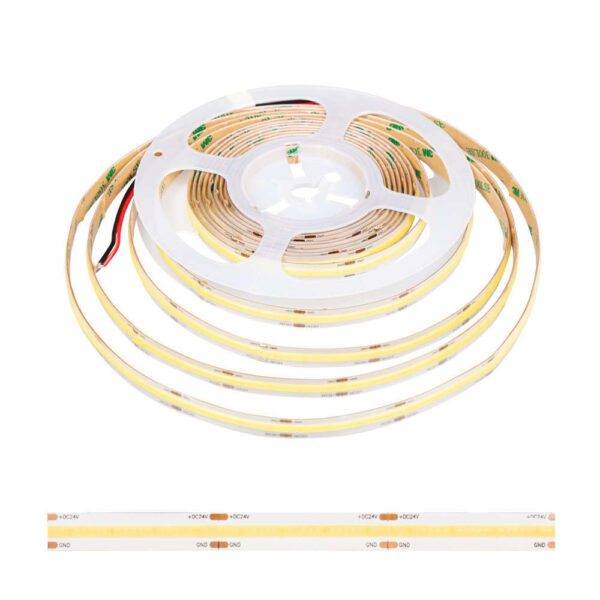 BERGMEN 01-002-046-04-65-A е професионална COB LED лента 24V DC с висока плътност на диодите, осигуряваща равномерна, непрекъсната светлина без видими точки. Благодарение на неутралната цветна температура от 4000K, тя е идеална за осветление в жилищни, търговски и офис пространства. С мощност 10W на метър и светлинен поток от 900 lm/m, тази лента съчетава енергийна ефективност с отлично визуално възприятие. Водоустойчивата защита IP65 позволява използване в среди с повишена влажност като кухни, бани, витрини и външни елементи. Лентата е с ширина 9 мм и се предлага на ролка от 5 метра, като може да бъде рязана на всеки 5 см, което осигурява гъвкавост при монтаж. Отличен избор за дизайнерски и функционални LED решения.