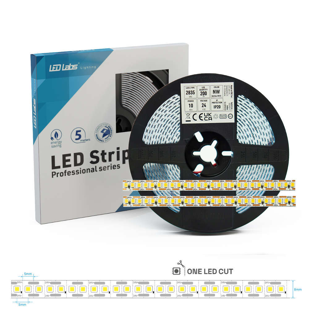 Професионална LED лента 24VDC LED Labs PRO 3Y 16-2390-01 е усъвършенствано решение за осветление, предлагащо изключителна ефективност до 140 lm/W. С възможност за рязане на всеки 5 мм, той е идеален за прецизни приложения. Високият индекс на цветопредаване (RA>90) гарантира естествено представяне на цветовете, а животът от 60 000 часа гарантира дълготрайна работа. LED лентите от тази серия са с клас IP20 степен на защита и са с петгодишен гаранционен срок. Благодарение на използването на грунд за печатни платки с 3oz мед, беше възможно значително да се увеличи техният експлоатационен живот. Серията 3Y също има забележимо по-ниски падове на напрежение в сравнение със стандартните LED ленти. Професионална LED лента 24VDC LED Labs PRO 3Y 16-2390-01 са завършени с професионална монтажна лента Blue Tape, позволяваща незабавно поставяне в почистен LED профил или метална основа.