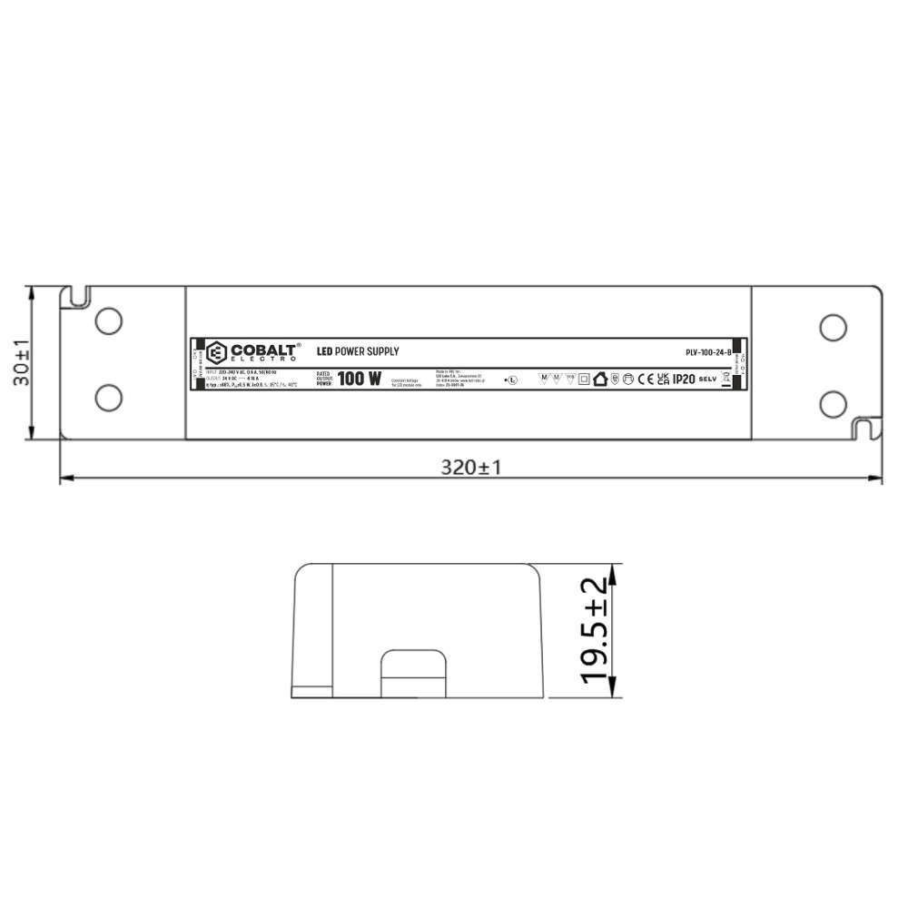 Трансформатор за LED осветление Cobalt Electro 100W, 220/24VDC, 4.16A, IP20
